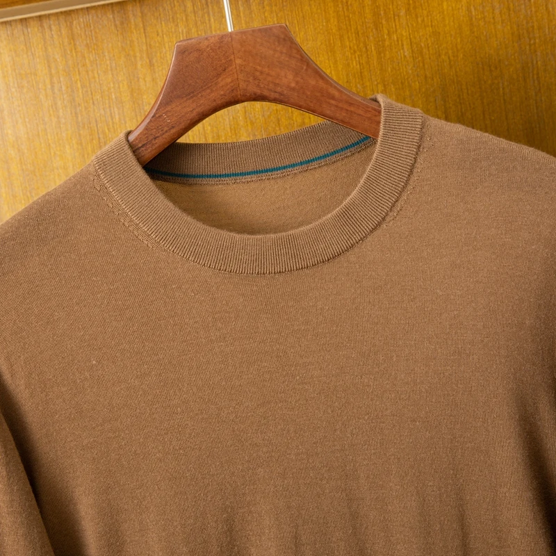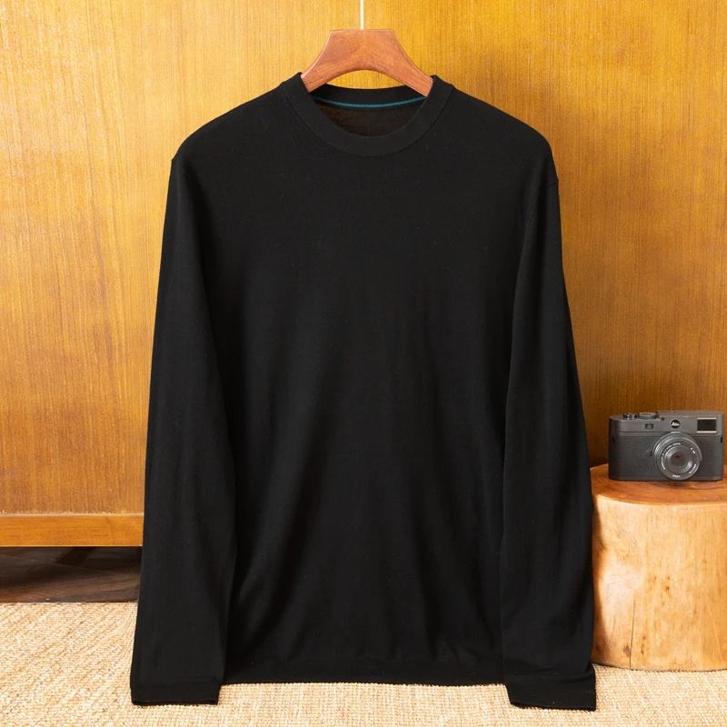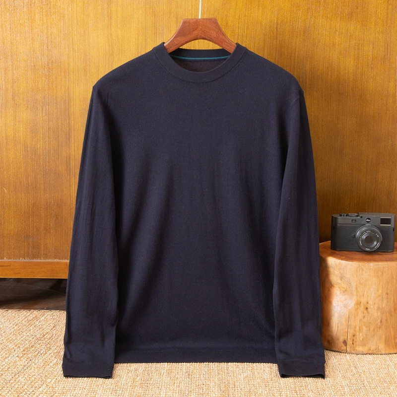 100% Wool Men's Cardigan Thin Crew Neck Winter Underwear Spring Autumn 15.5 Fineness OEM Supply Breathable Anti-Pilling Full