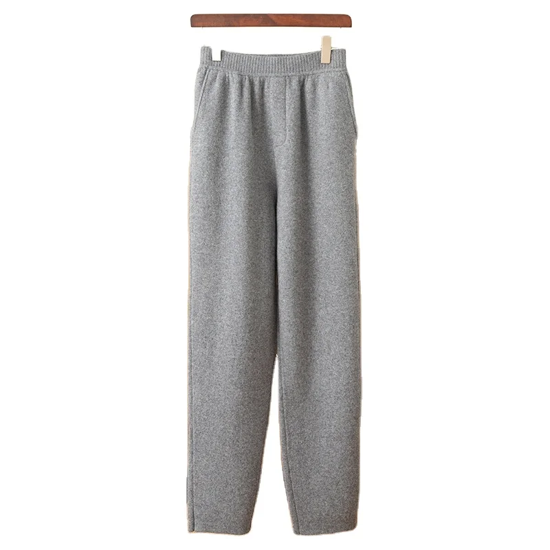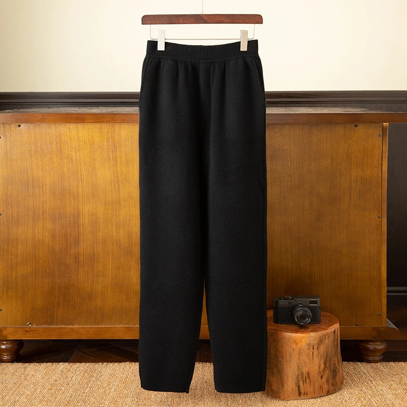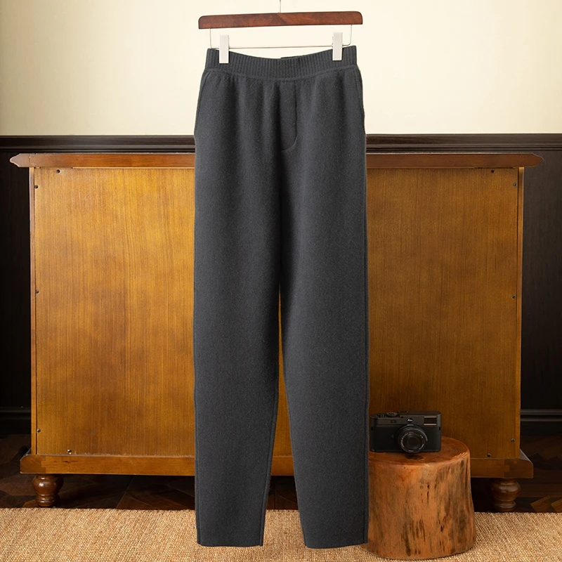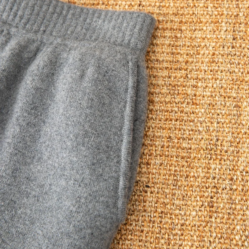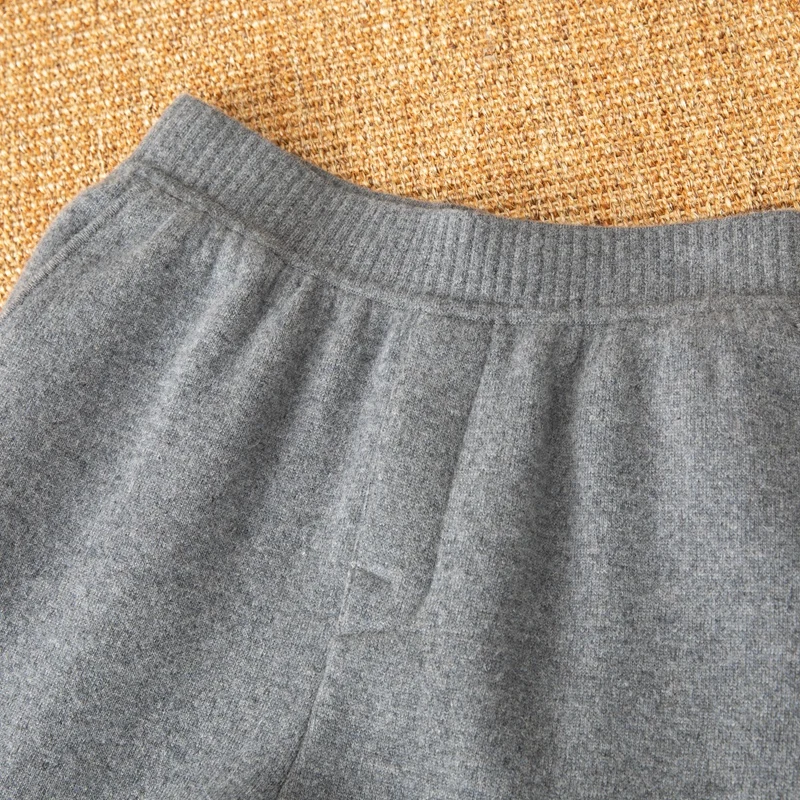 Men's 100% Cashmere Lightweight Straight Mid-Rise Knitted Padded Pants with Waist Logo Casual Style Customizable