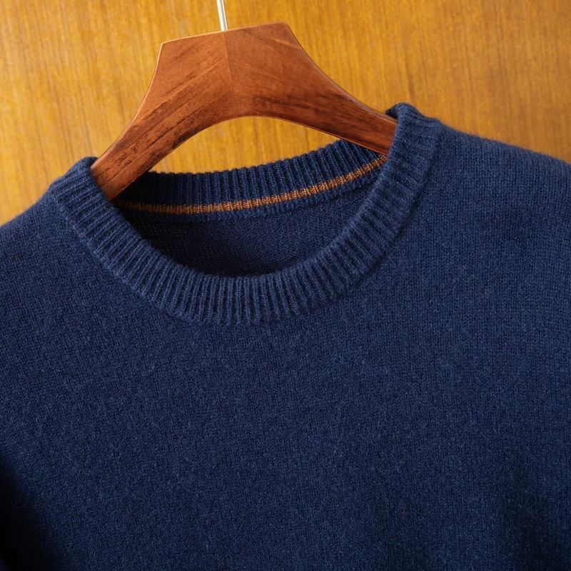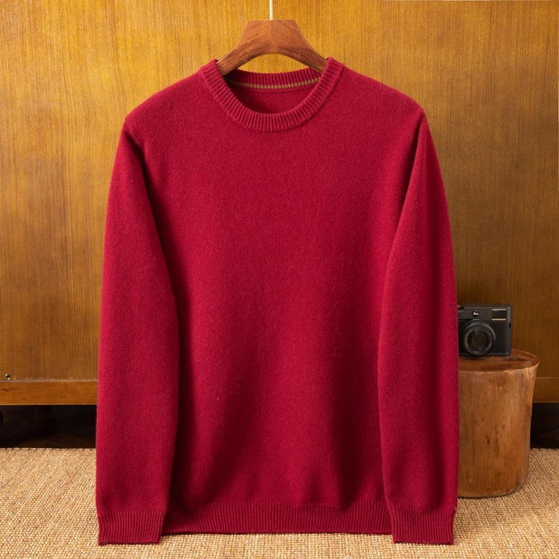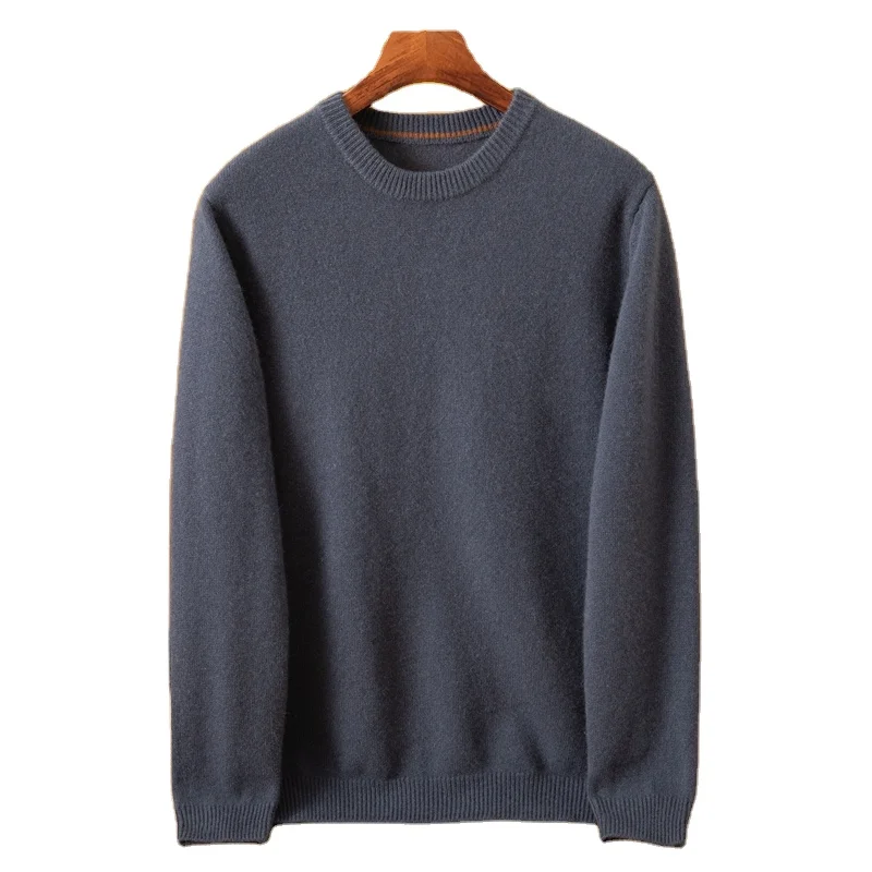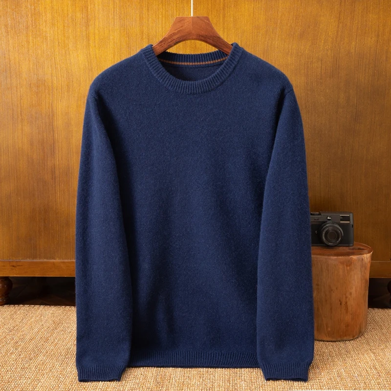 MYAKON Men's 100% Cashmere Coarse Wool Winter Crew Neck Cardigan Breathable Anti-Pilling Solid Pattern Fall Full Sleeve Standard