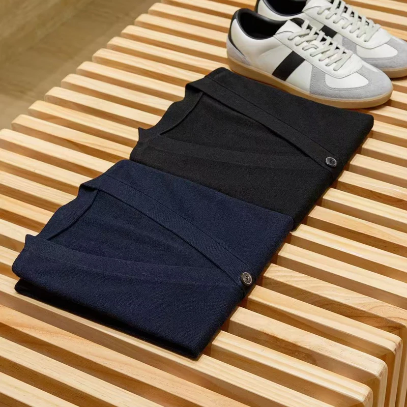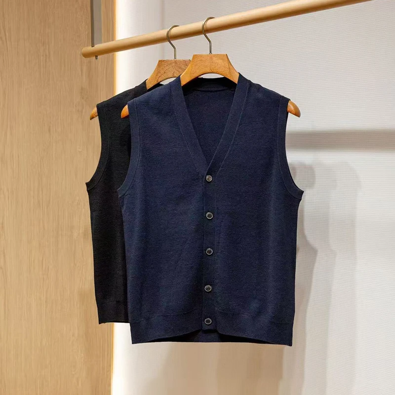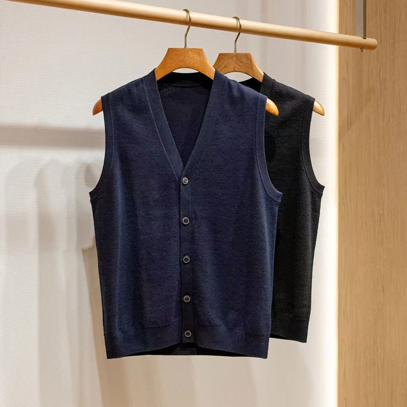 Men's Padded Buckle V-neck Merino Wool Knitted Vest Business