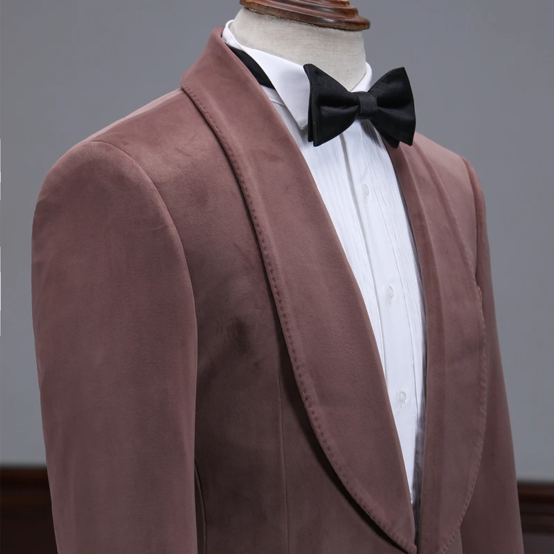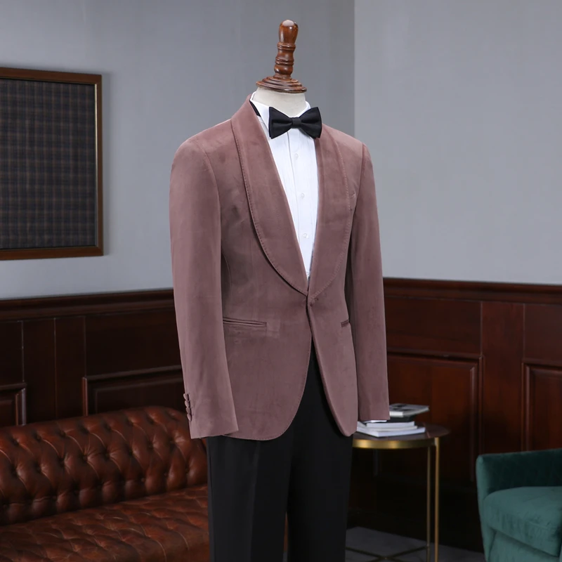 Cenne Des Graoom Gentleman Light Luxury pink Velvet Green Collar Dress Suit Trim Velvet Suit Man