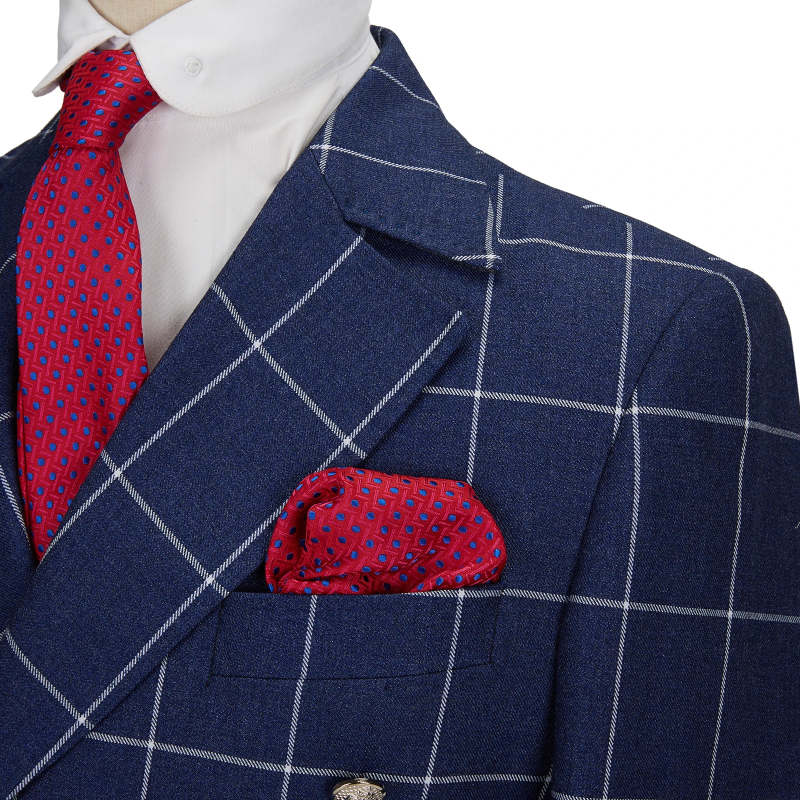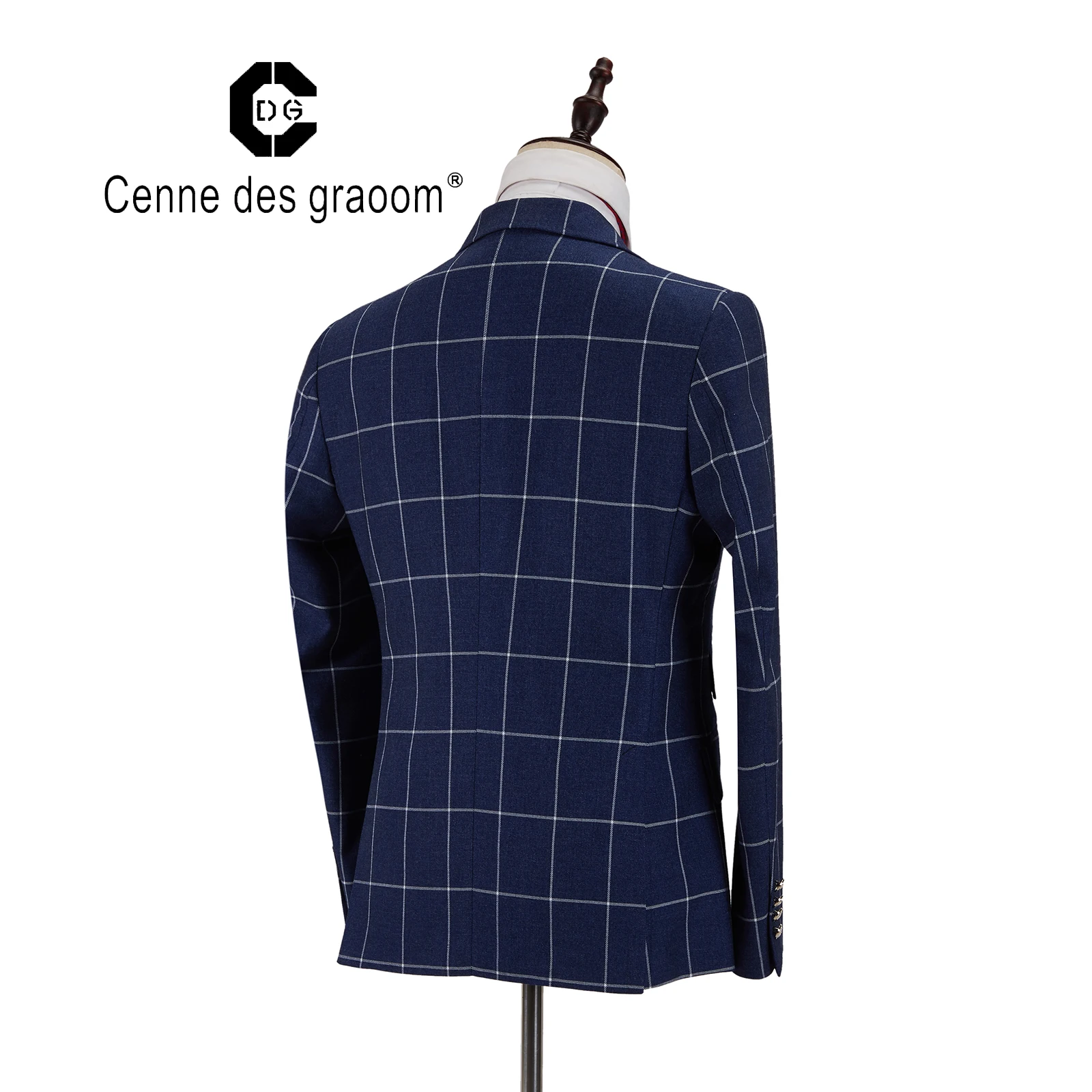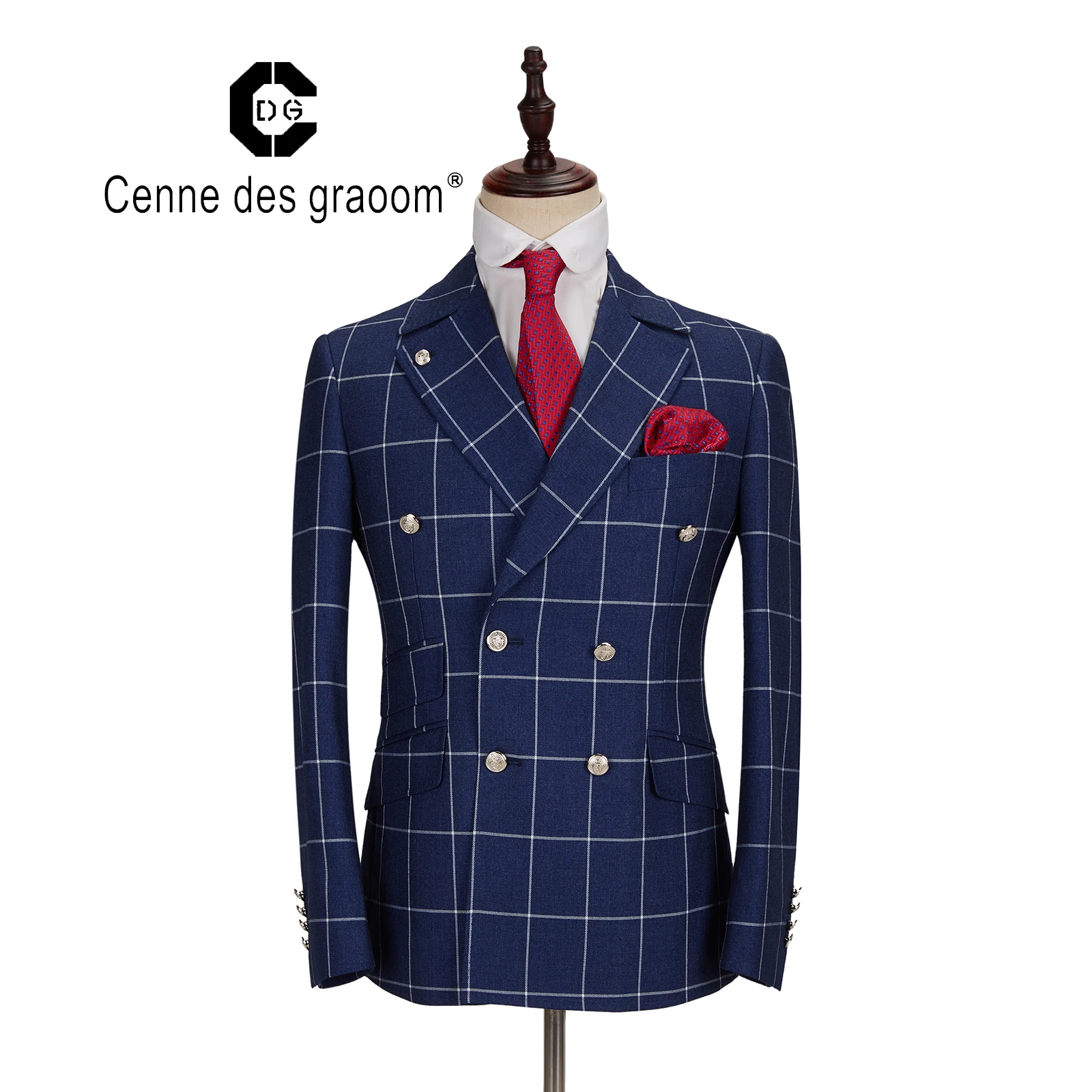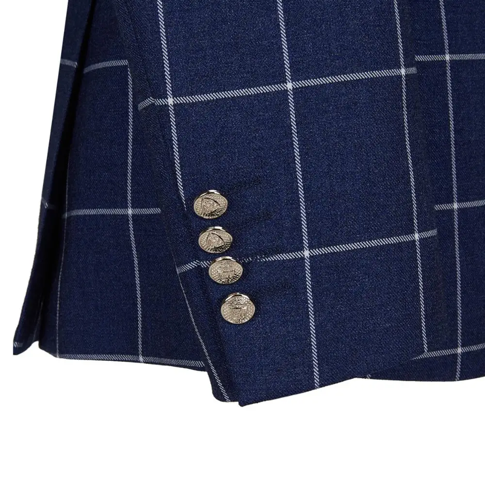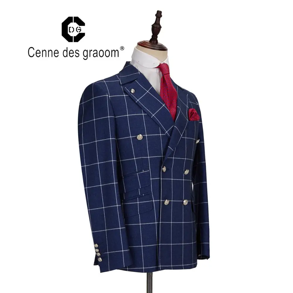 Mens Suit 2 Piece Slim Fit Blue Plaid Fabr Wedding Office Double Breasted for Cenne Des Graoom Lapel Blazer Trousers