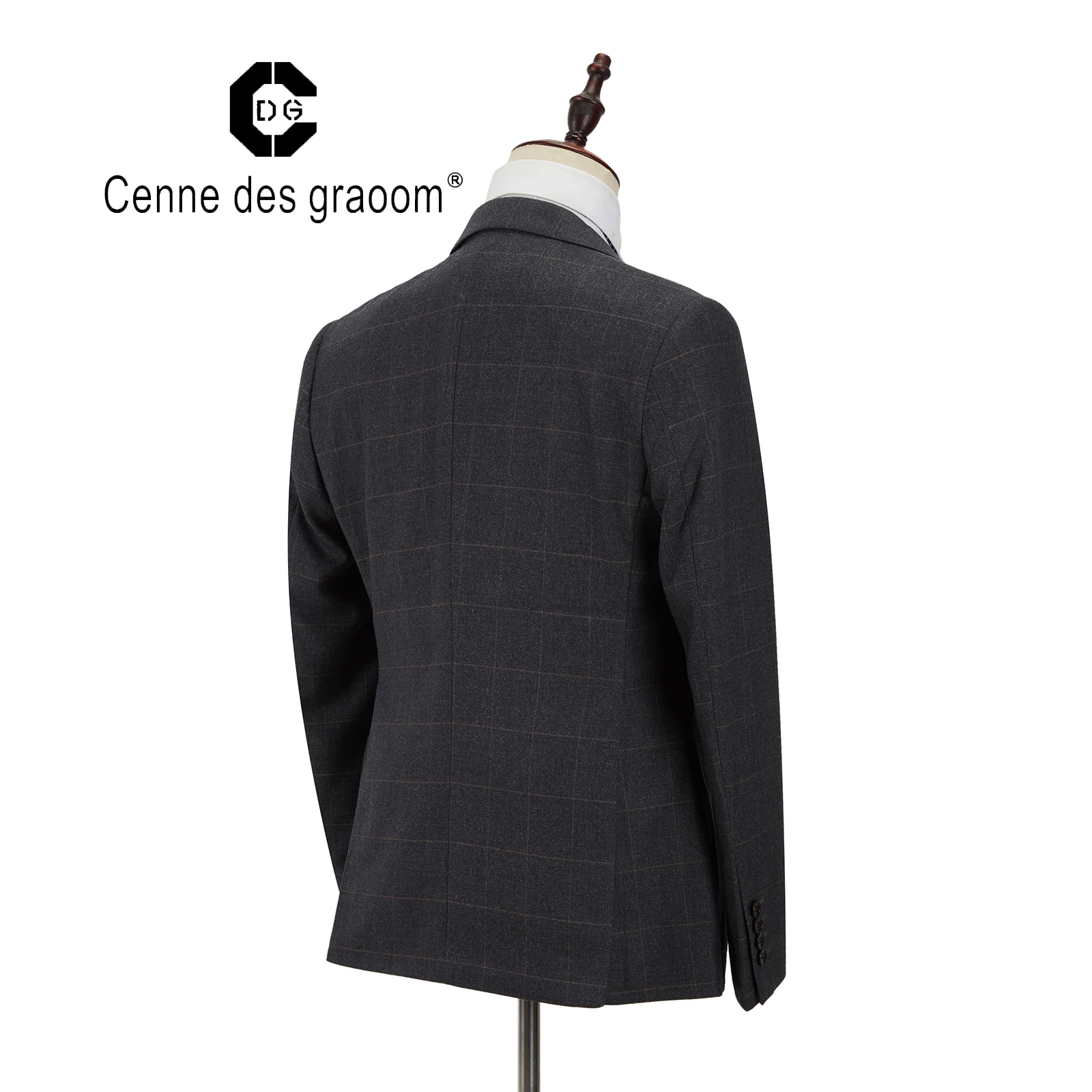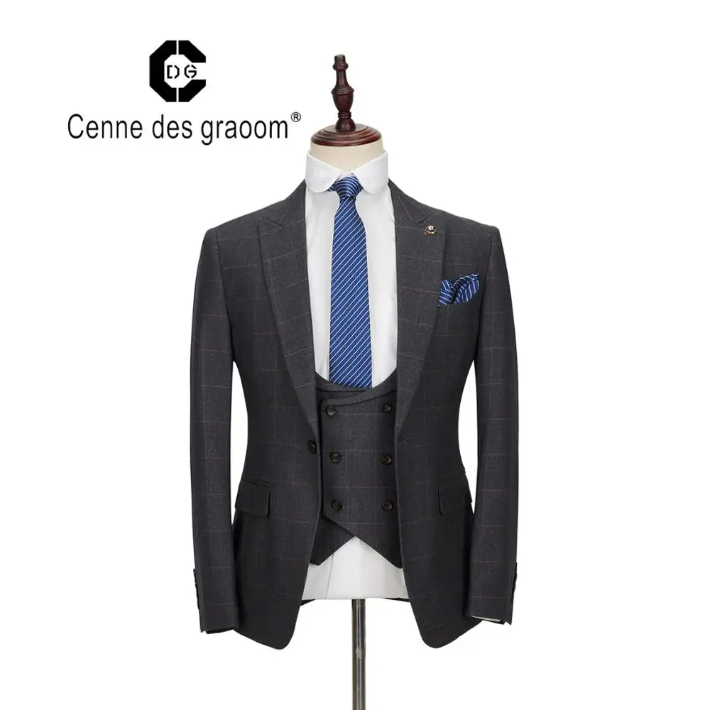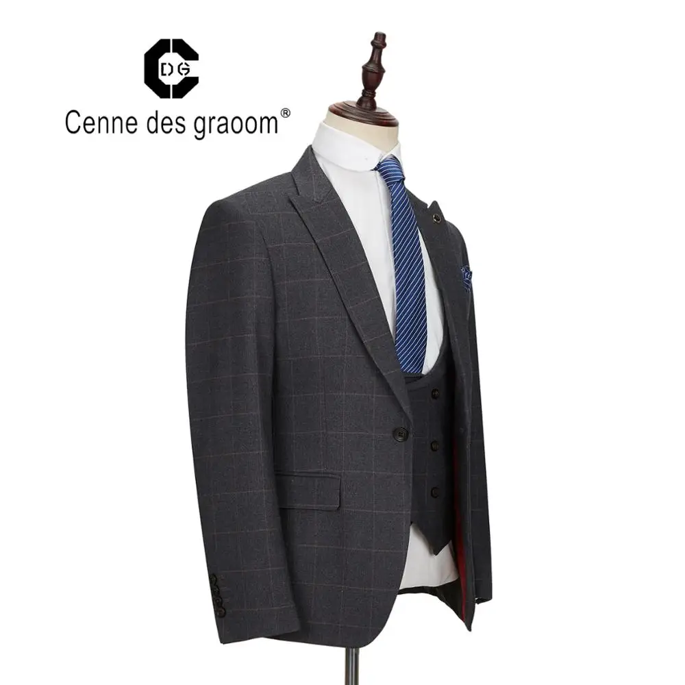 2020-Mens Suits 3 Piece Slim Fit High-grade Plaid Fabric Dinner Suit for Men Cenne Des Graoom Lapel Blazer Waistcoat Trousers