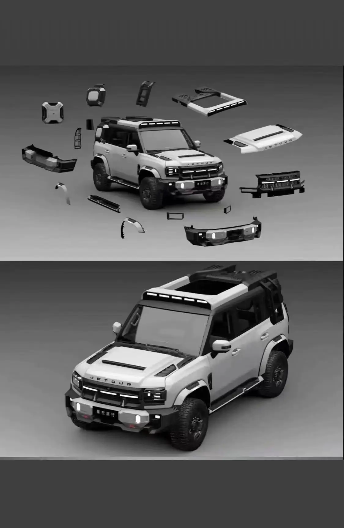 For Jetour T2 New Star Top Body Kit Special Mech Mesh Platform Luggage Rack with Side Schoolbag Ladder Performance Parts