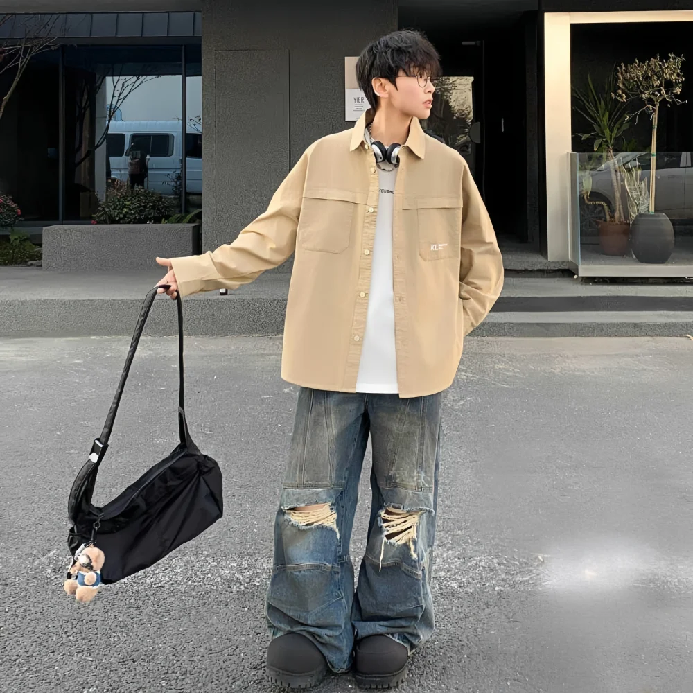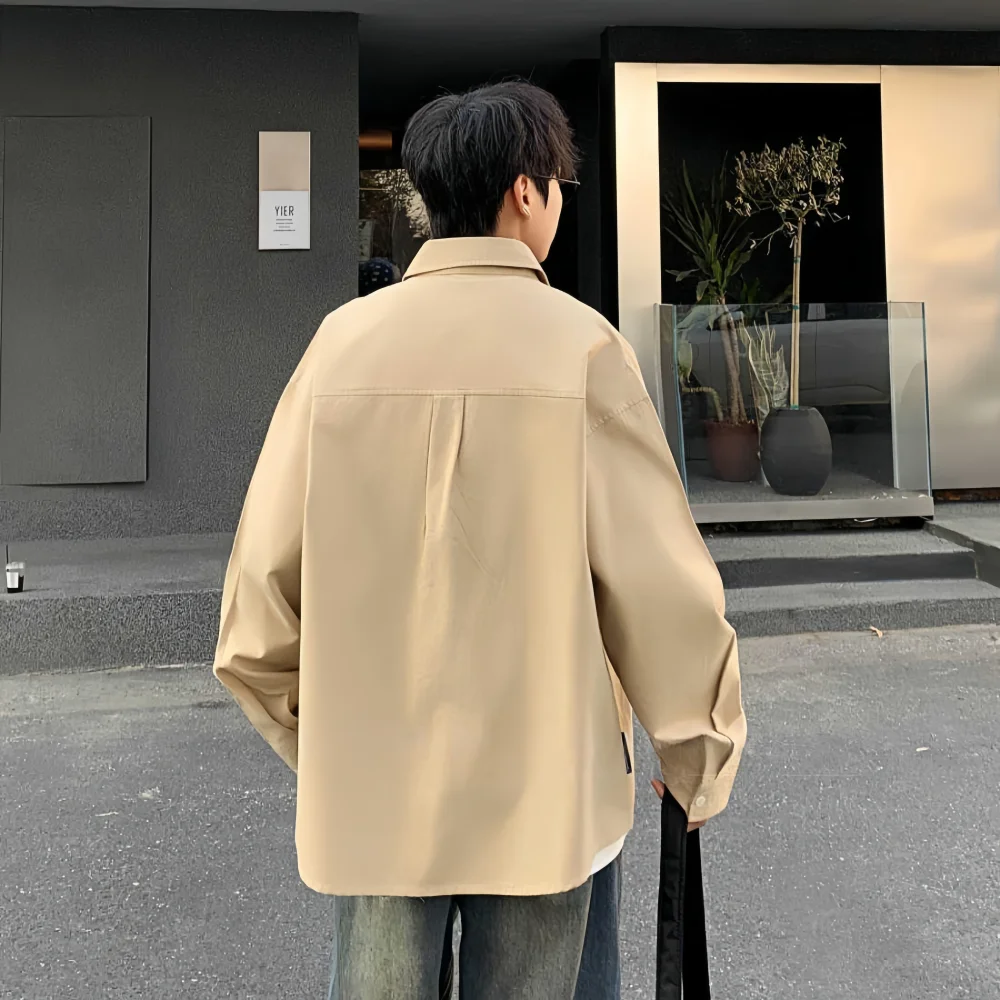 Men's Casual Shirts Spring/Autumn New Long Sleeve Solid Knitted Breathable 100% Cotton Retro Style Horn Button