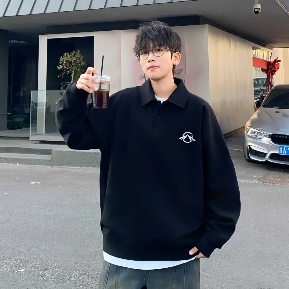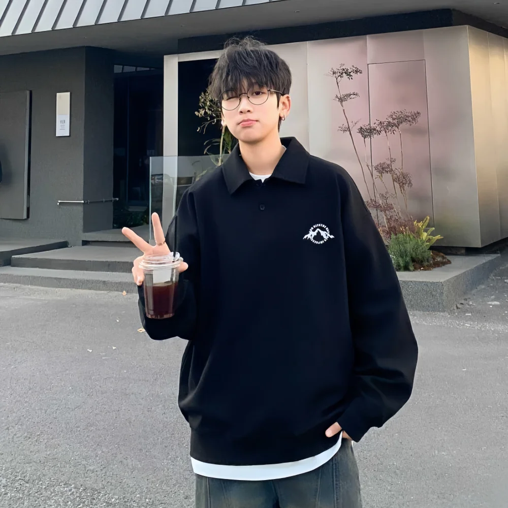 Custom Vintage Style Men's Sporty Sweatshirt Turn-down Collar Regular Fit Printed Knitted 78%Cotton Solid Color Spring