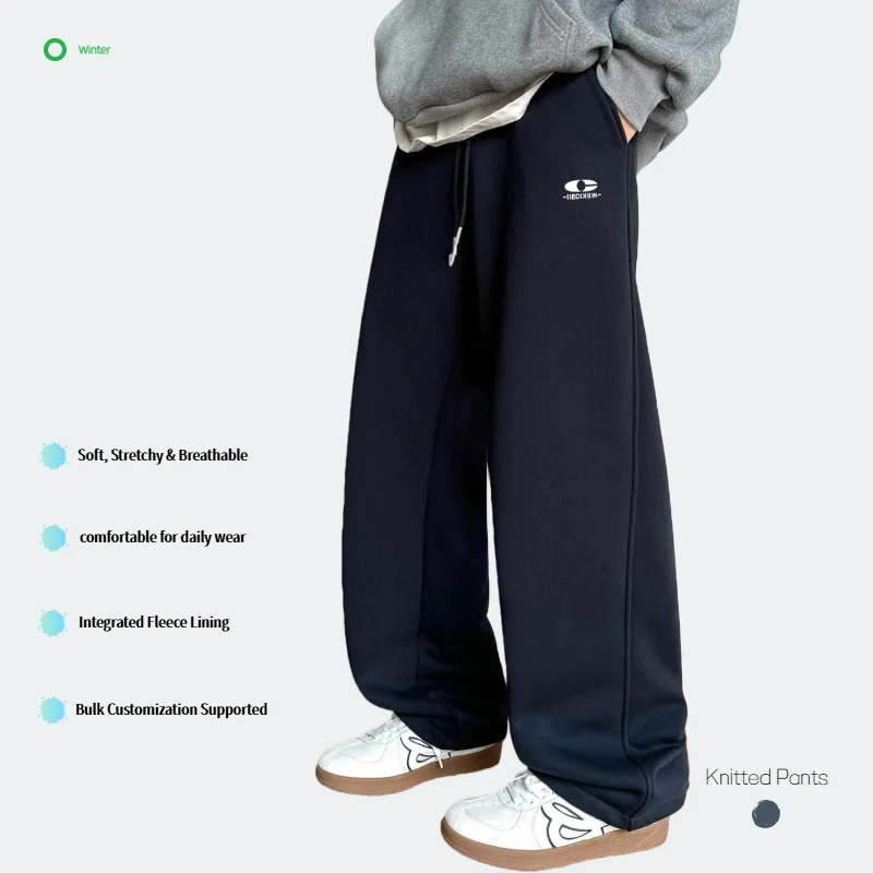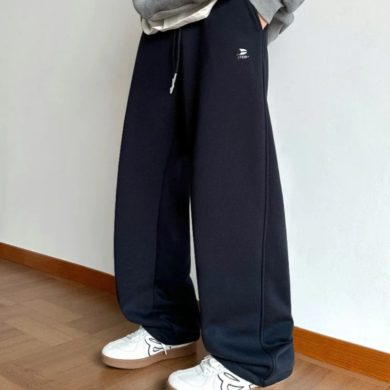 Men's Vintage Black Straight-Leg Plain Dyed Eco-Friendly Breathable Casual Loose Fashionable Solid Color Polyester/Cotton Fleece