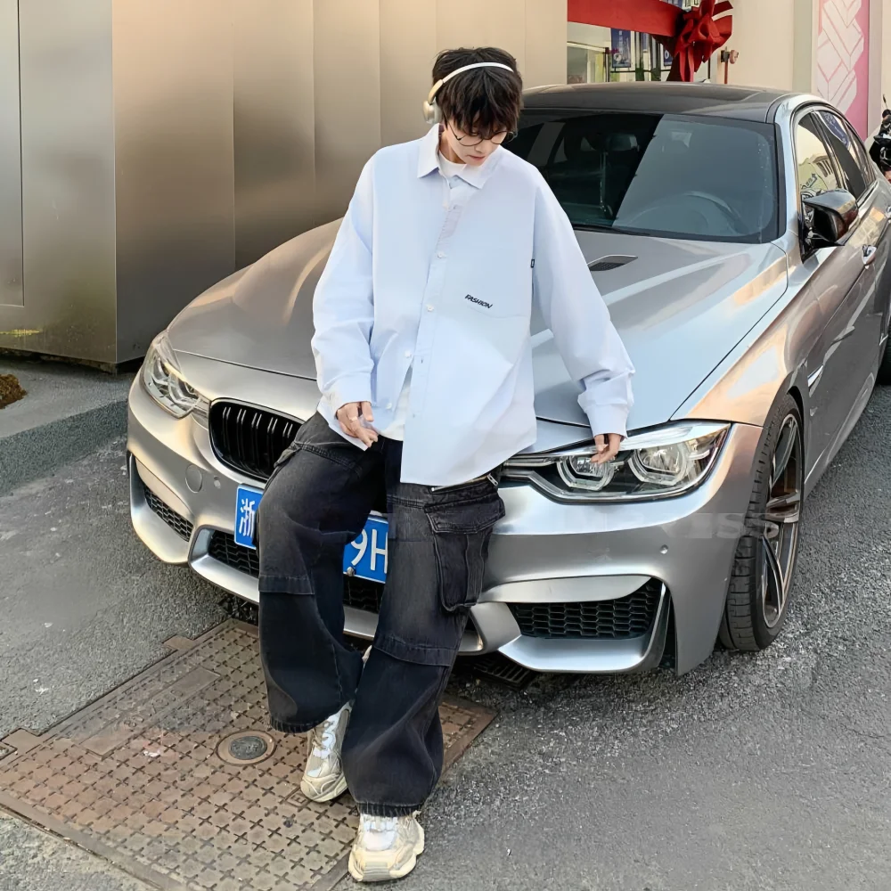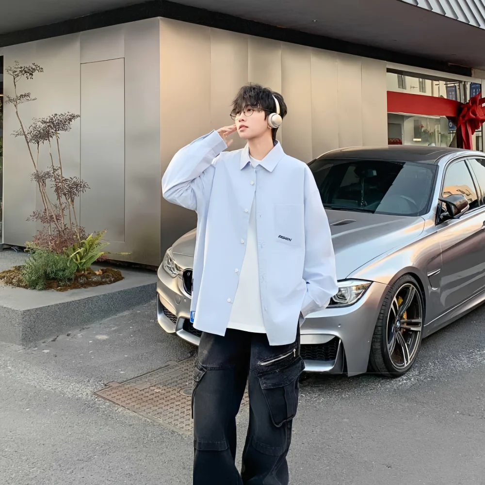 Men's Casual Long-sleeved Shirt Spring New 100% Cotton Knitted Breathable Horn Button Solid Teenagers Wholesale