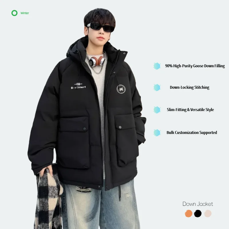 OEM Custom Design Waterproof Windproof Breathable Fall/Winter Men's Casual Thick Hooded Warmth Loose Fit Varsity Logo Jacket