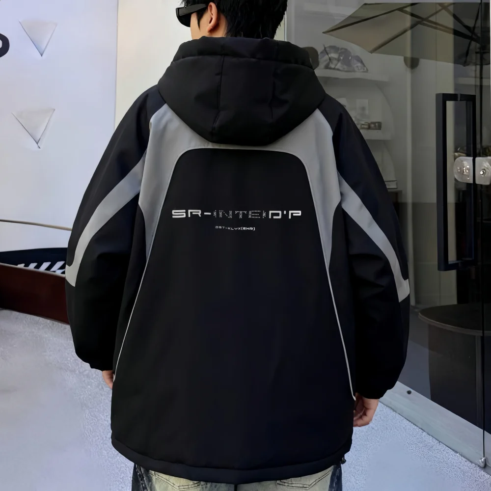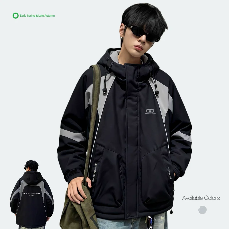 Custom Trendy Spring Men's Loose Thick Casual Breathable Front Hooded Puffer Jacket Zipper Waterproof Windproof Polyester Fabric