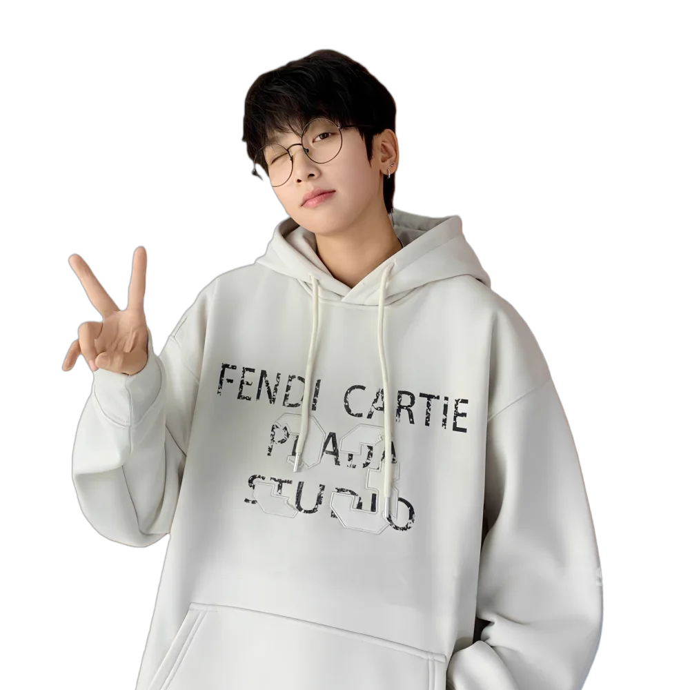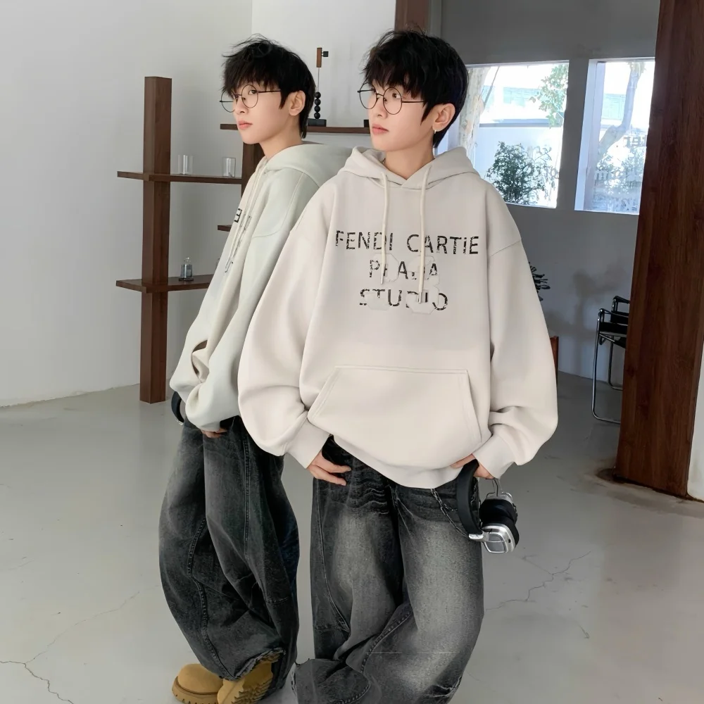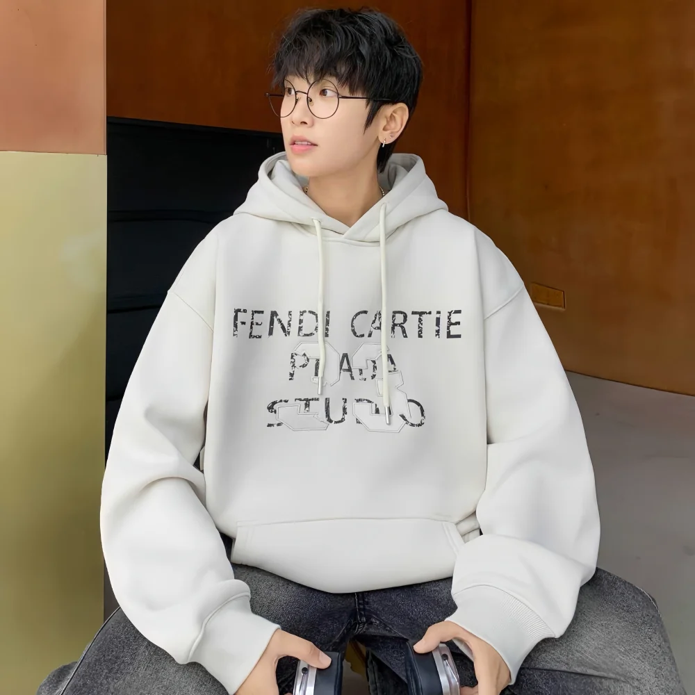 High Quality Knitted Heavyweight Pullover Hooded Street Wear Hoodie Custom Printed Chest Logo Puff Sleeve Plain Winter