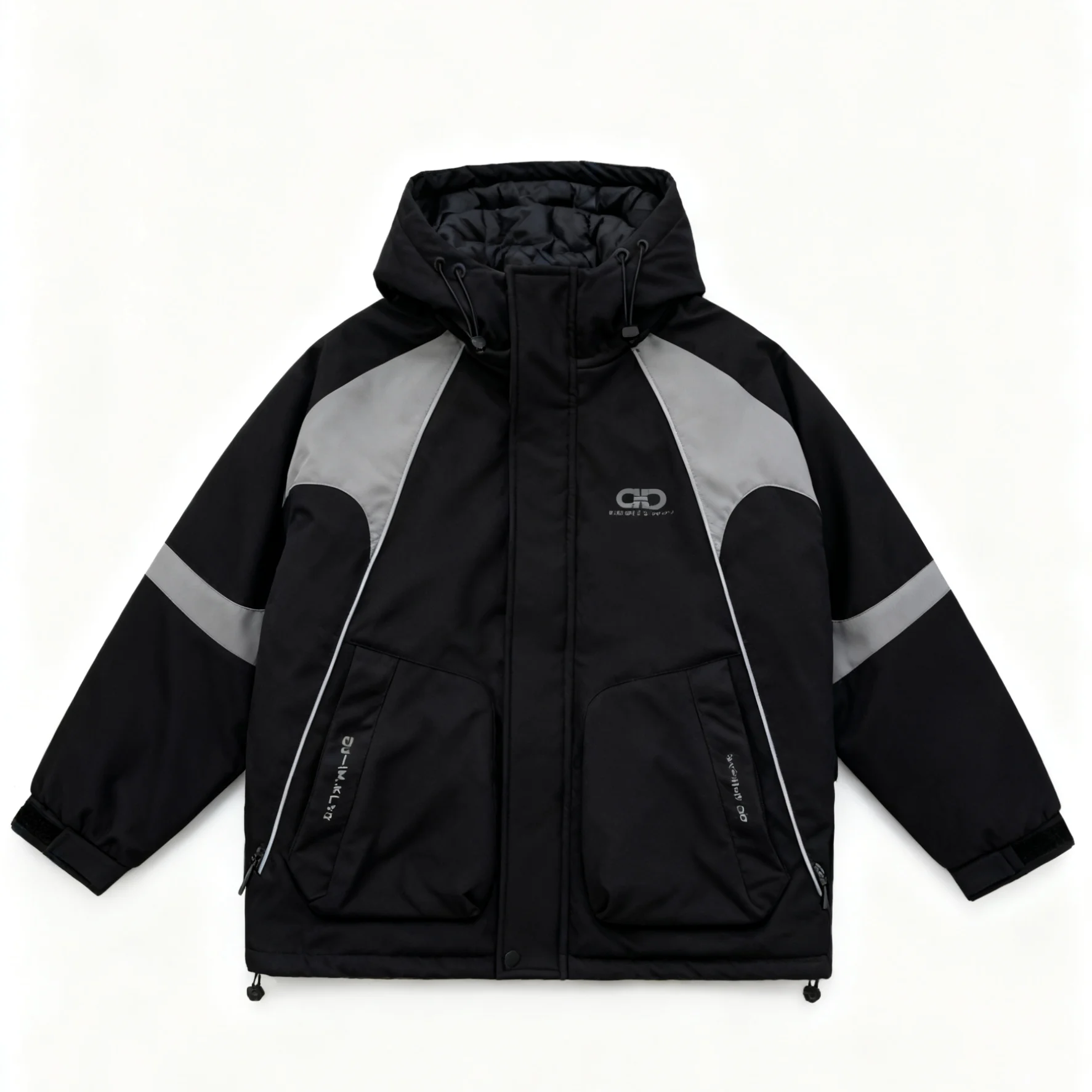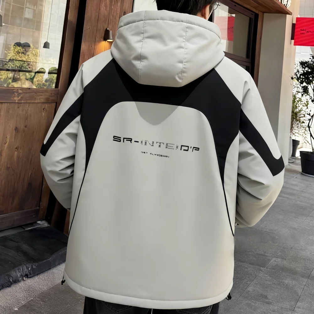 Custom Trendy Spring Men's Thick Casual Breathable Hooded Puffer Jacket Zipper Waterproof Windproof Polyester Fabric Front 300g