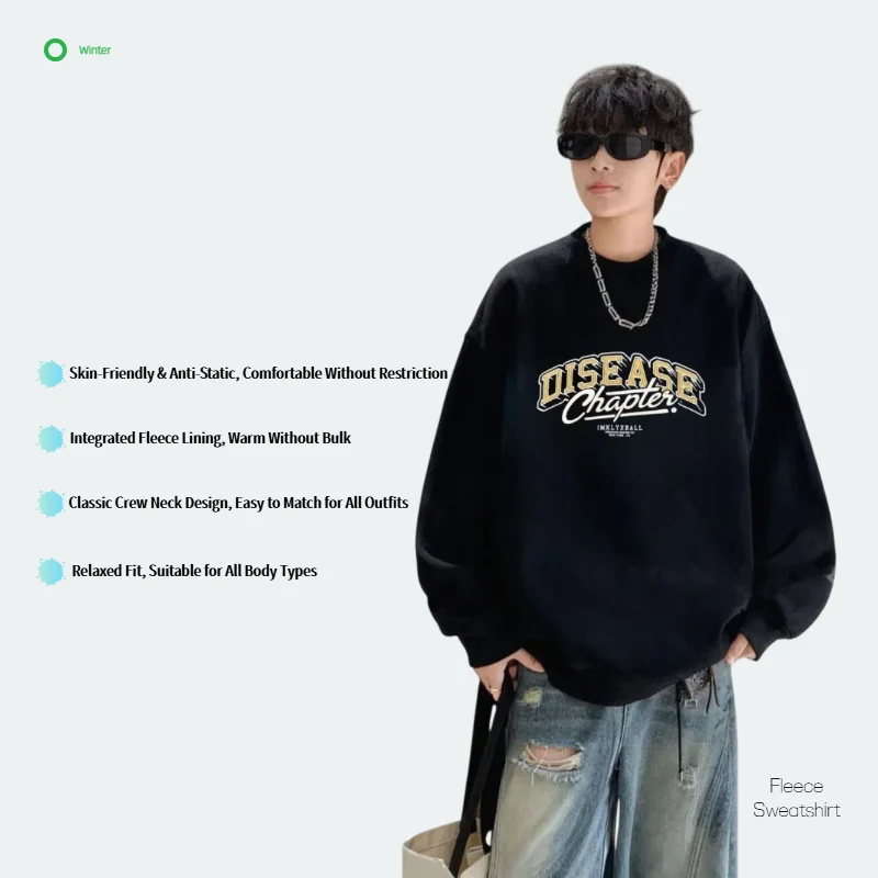 Christmas Teen Boys Fleece-Lined New Year Cozy Fleece Crew Sweatshirt Cotton Polyester Blend Warm Pullover