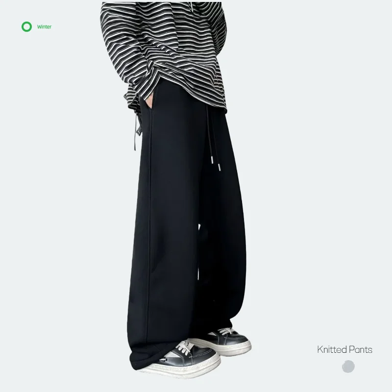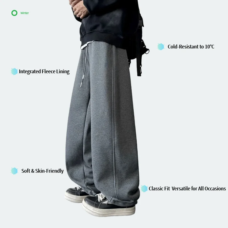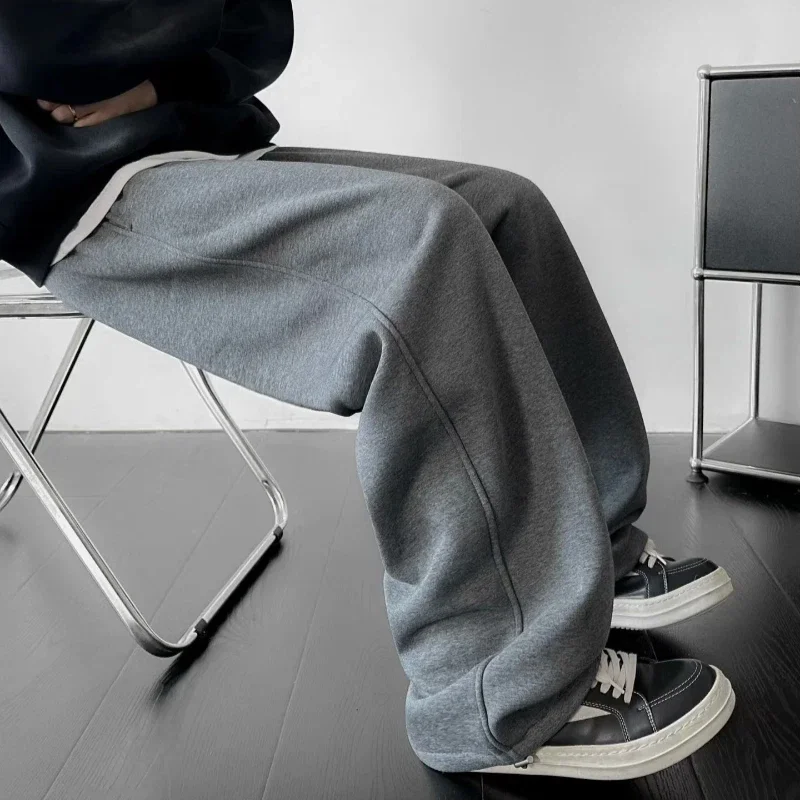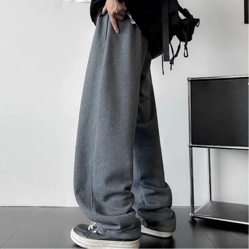Men's Vintage Black Straight-Leg Plain Dyed Eco-Friendly Breathable Casual Loose Fashionable Solid Color Fleece Sweatpants
