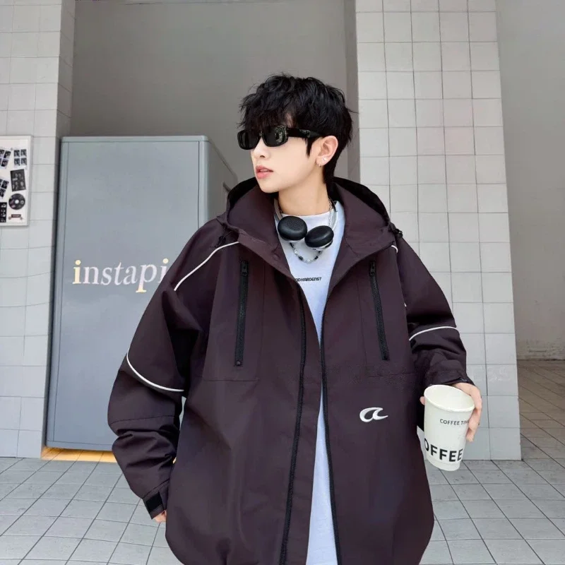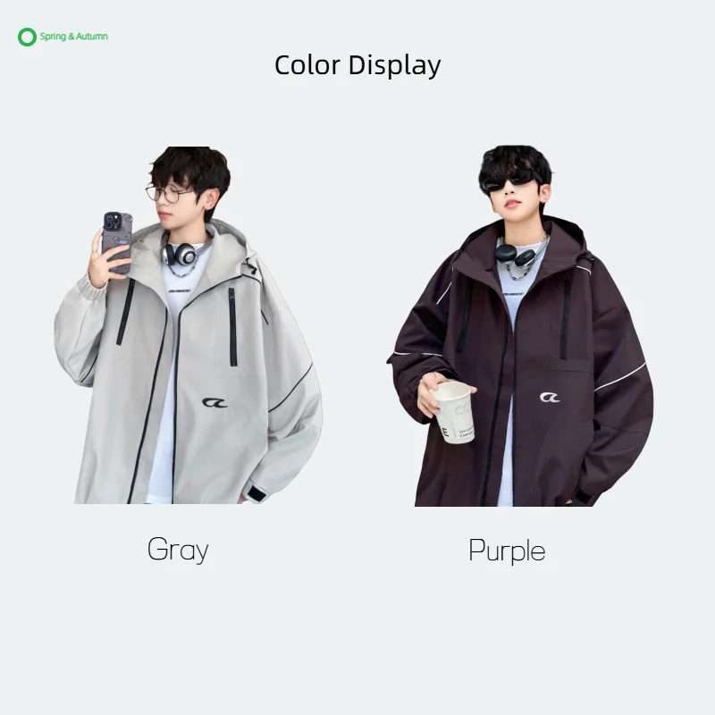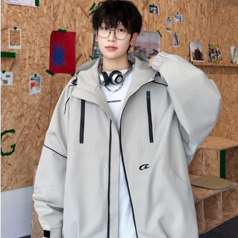 Boy's Hooded Quilted Jacket Spring Casual Loose Garment Dyed Letter Pattern Zipper Outwear