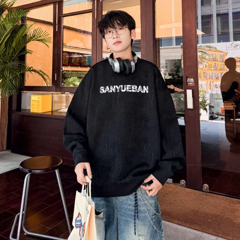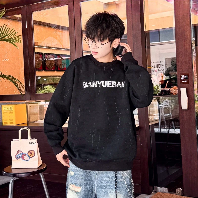 Winter 2022 New Men's Wool Embroidered Flight Jacket Black Sheepskin Shearling Leather Jacket