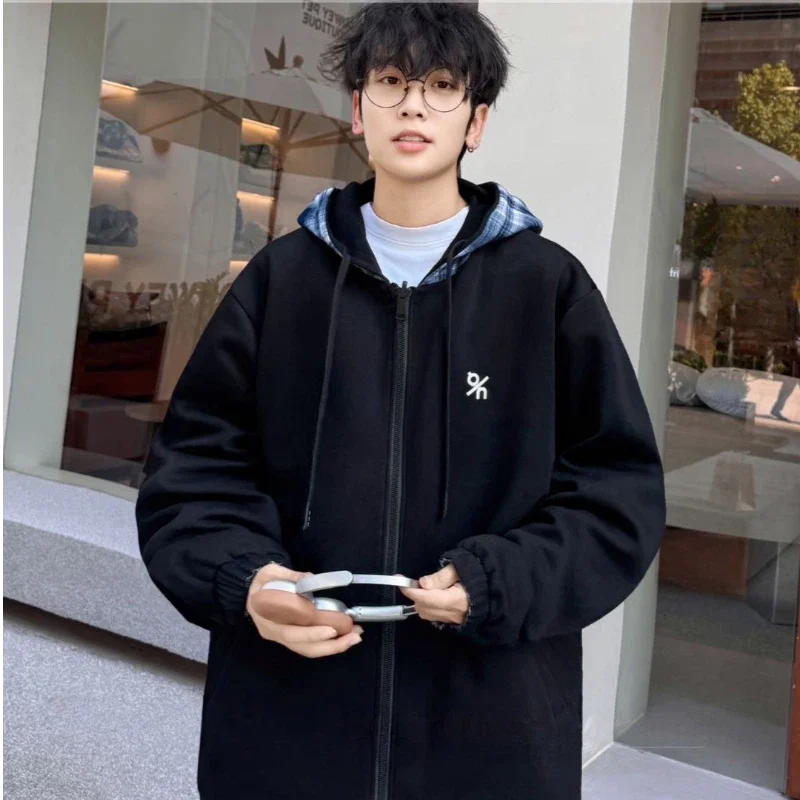 New Spring Autumn Men Hooded Reversible Solid Printed Knitted Breathable Regular Sleeve Sporty Comfortable Loose Fit Zipper