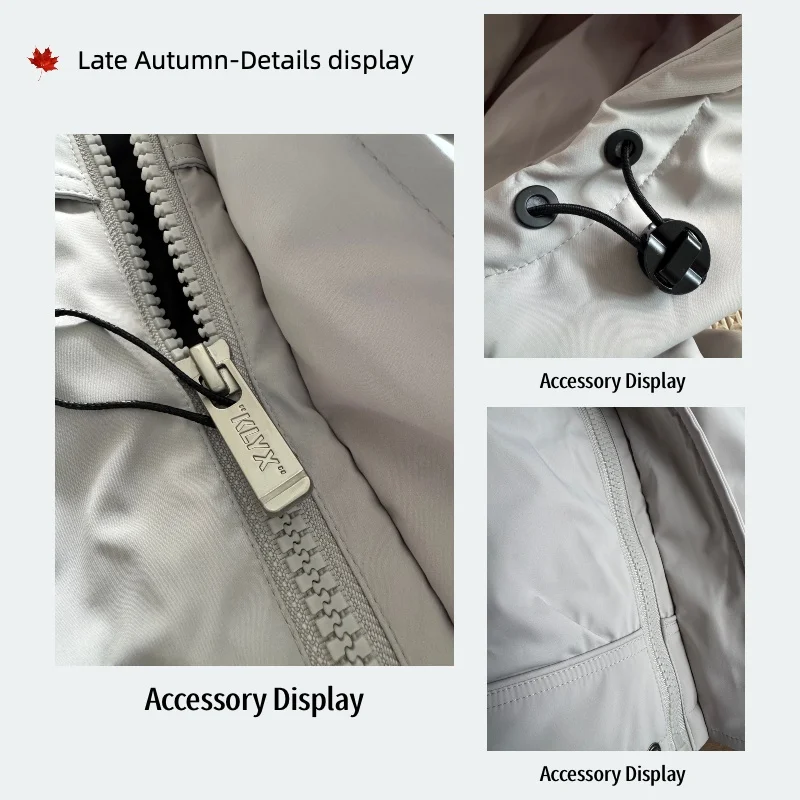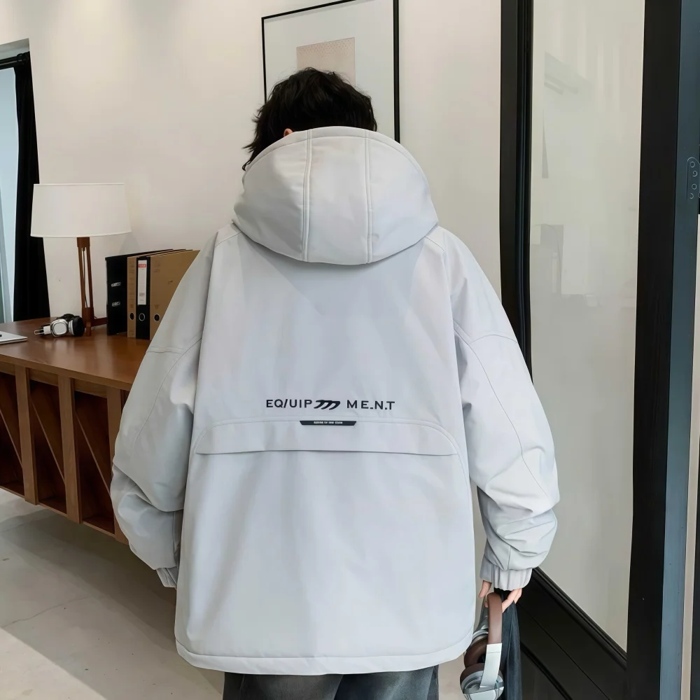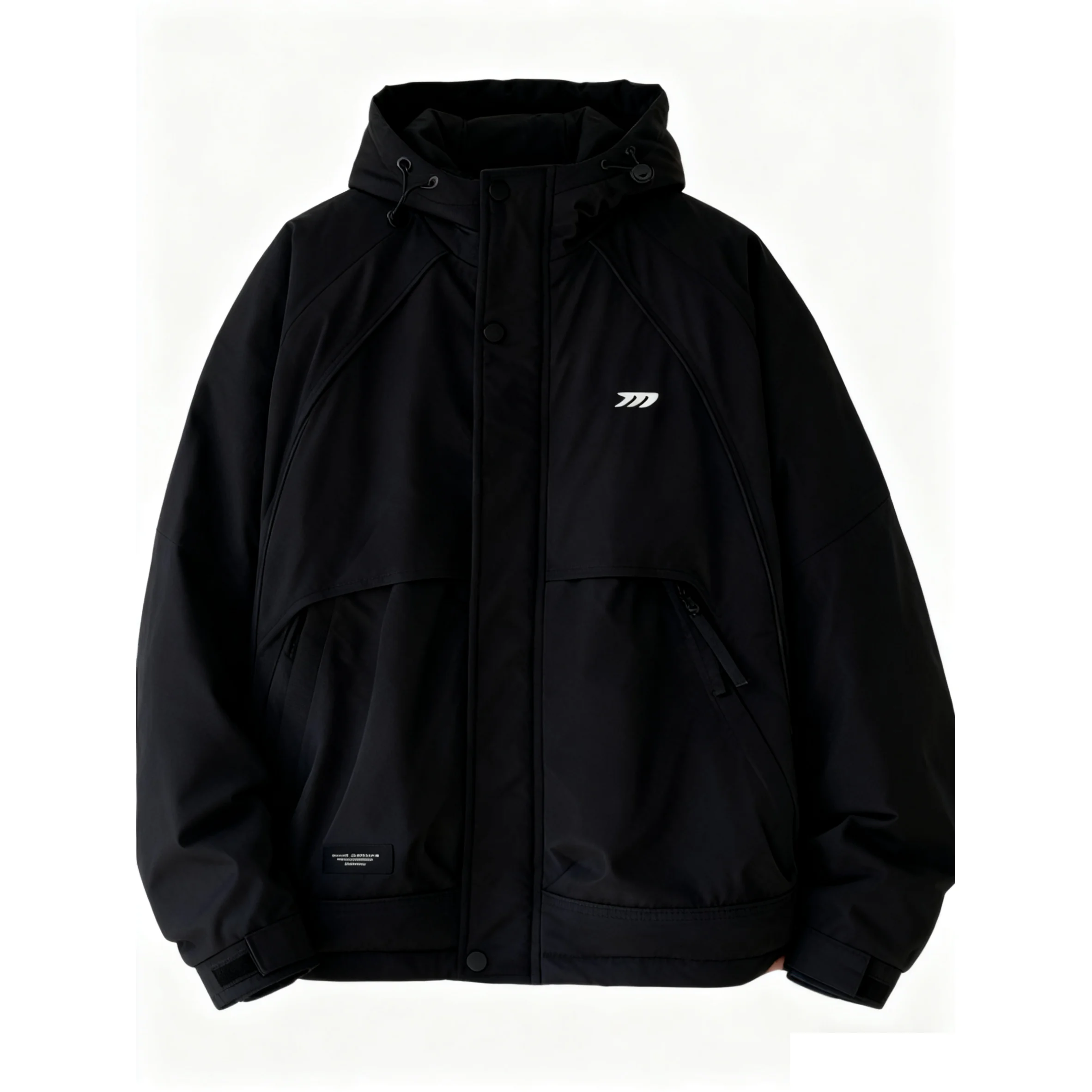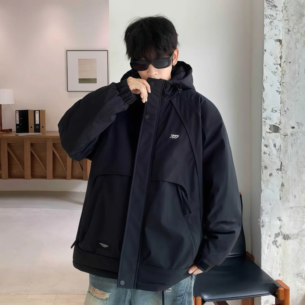 OEM Men's Hooded Loose Thickened Polyester Fabric Casual Spring Puffer Jacket Breathable Spandex Lining Long Zipper Water Front