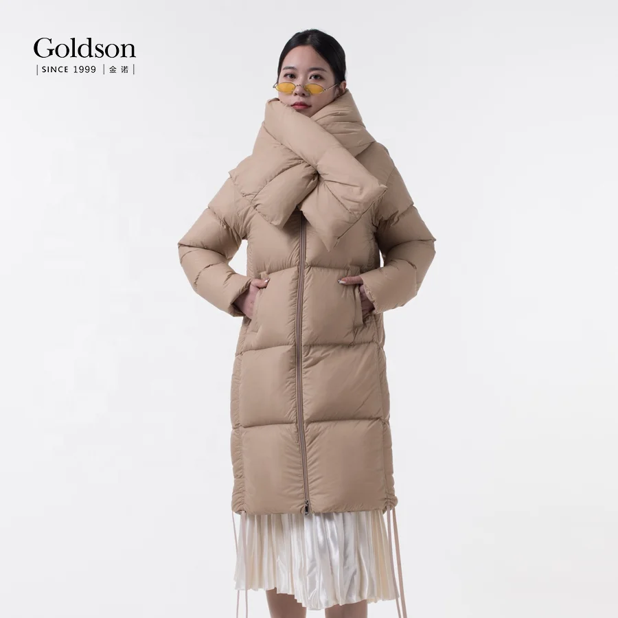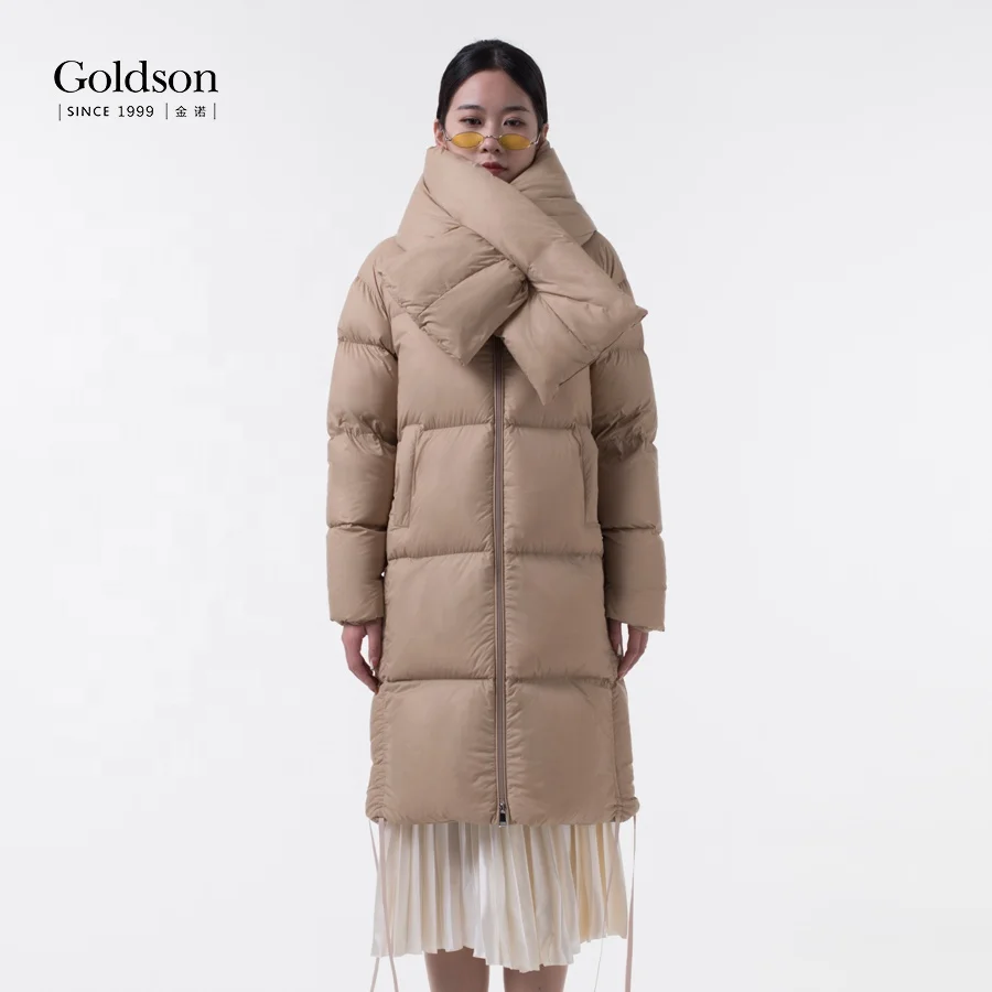 Waterproof Creative Hem With Scarf Filling Power 800 Duck Down Coats for Ladies