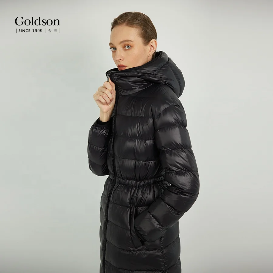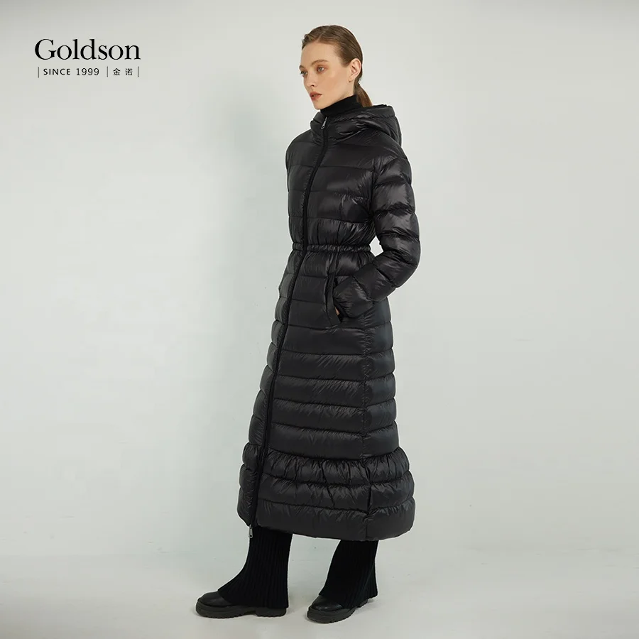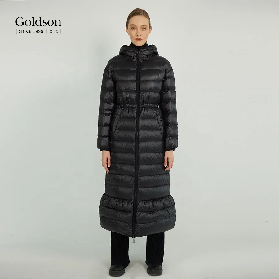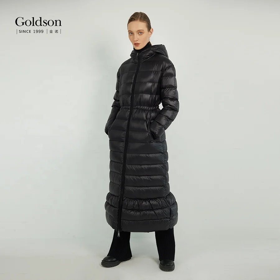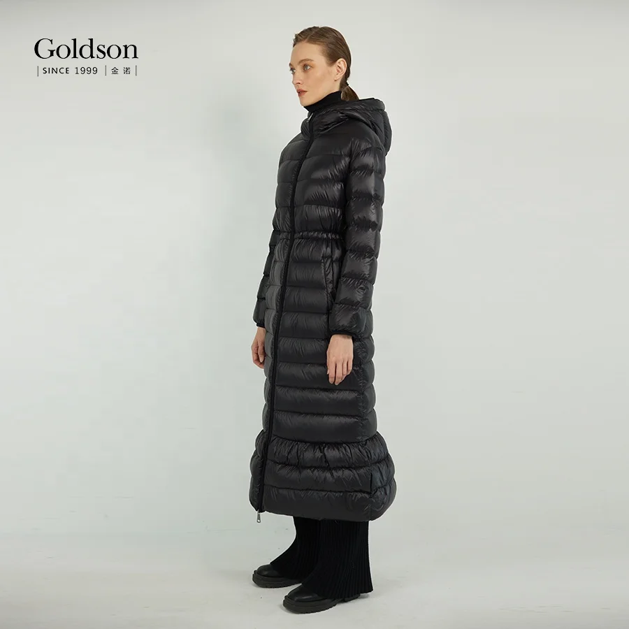 Winter Full Sleeve Ankle-length Falbala Hem Long Women's Down Coats With 90/10 Goose Down