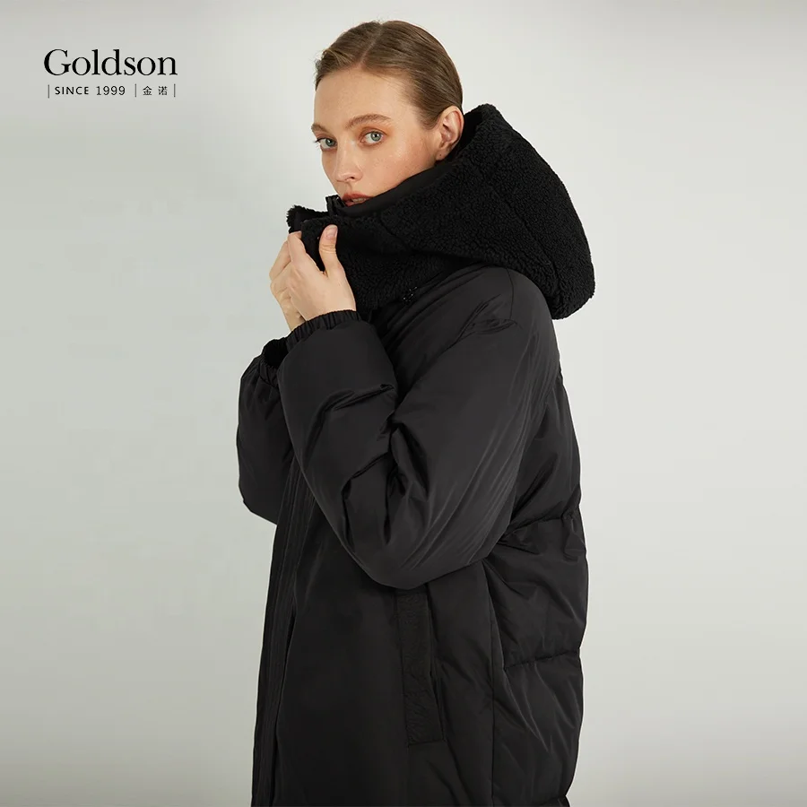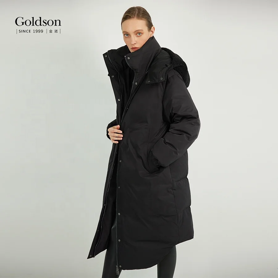 New Arrivals Lamb Wool Hood Winter Women Long Down Parka Coat Outwear for Female