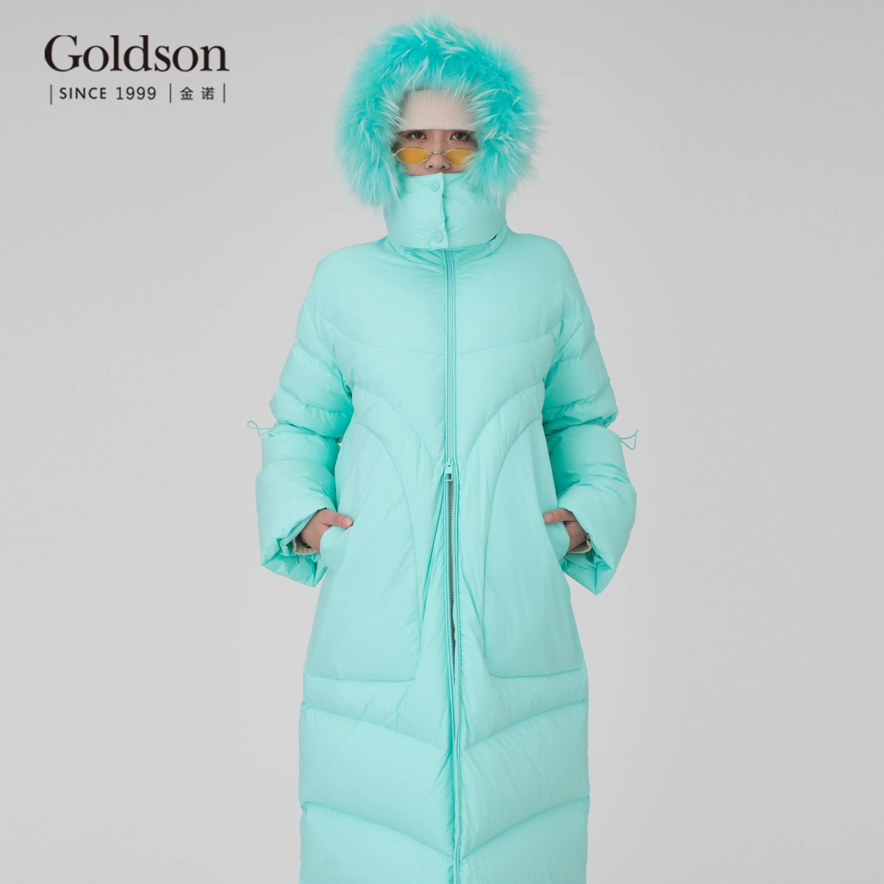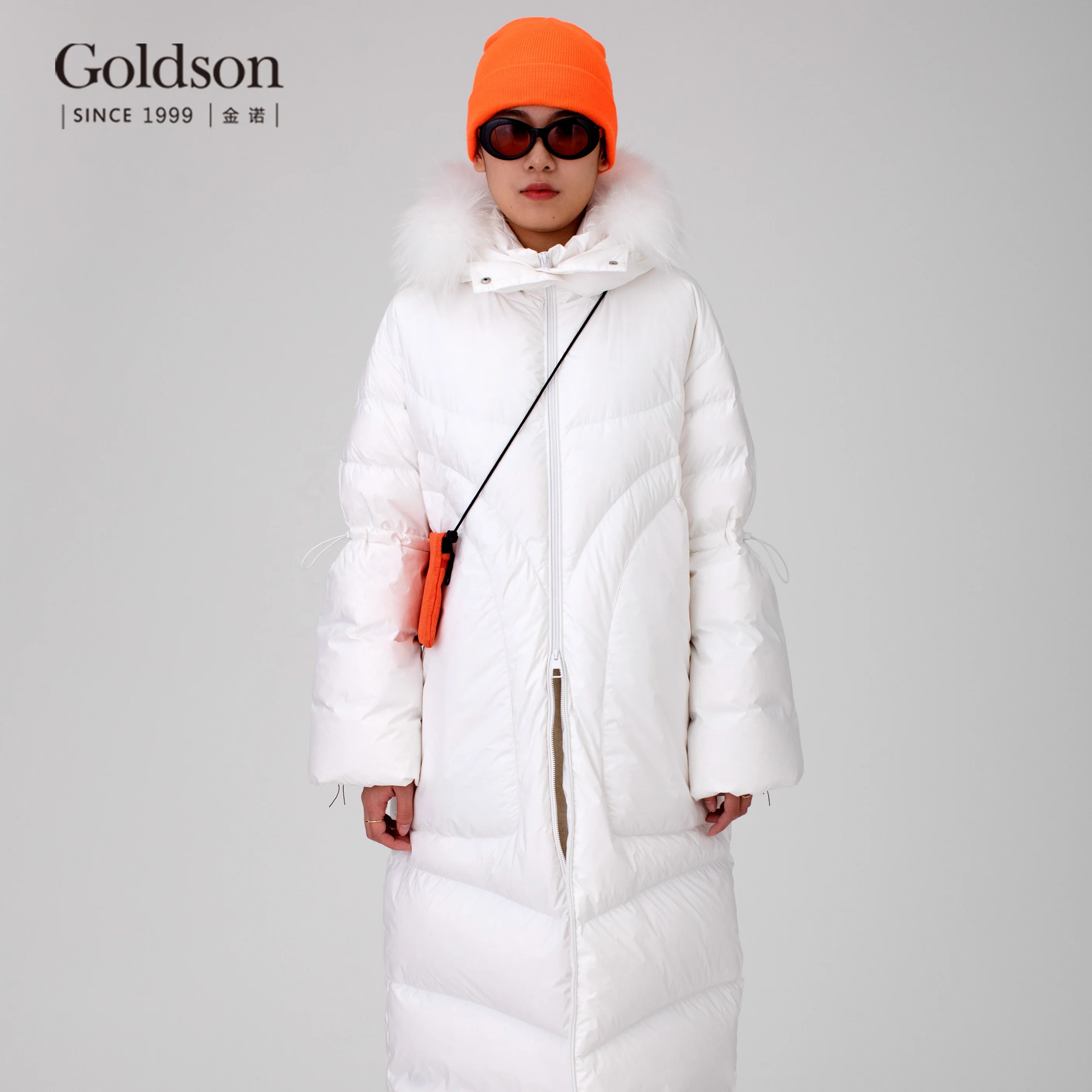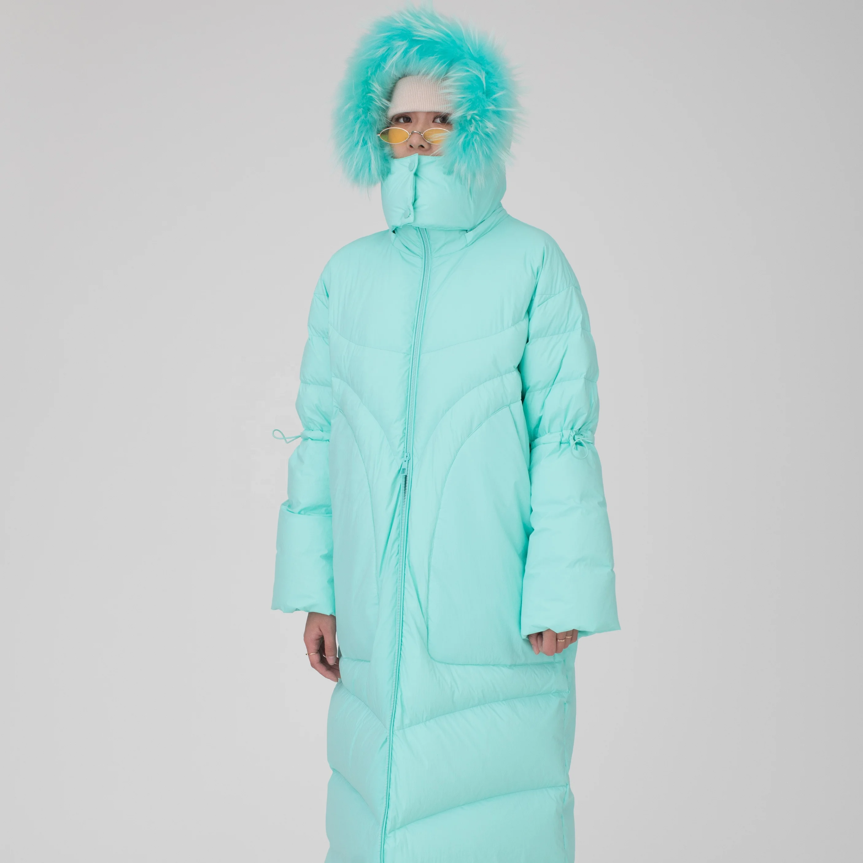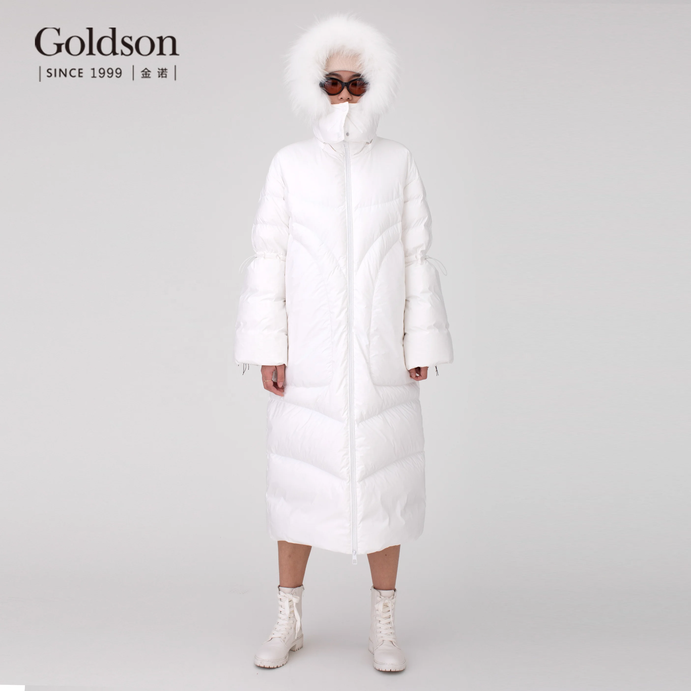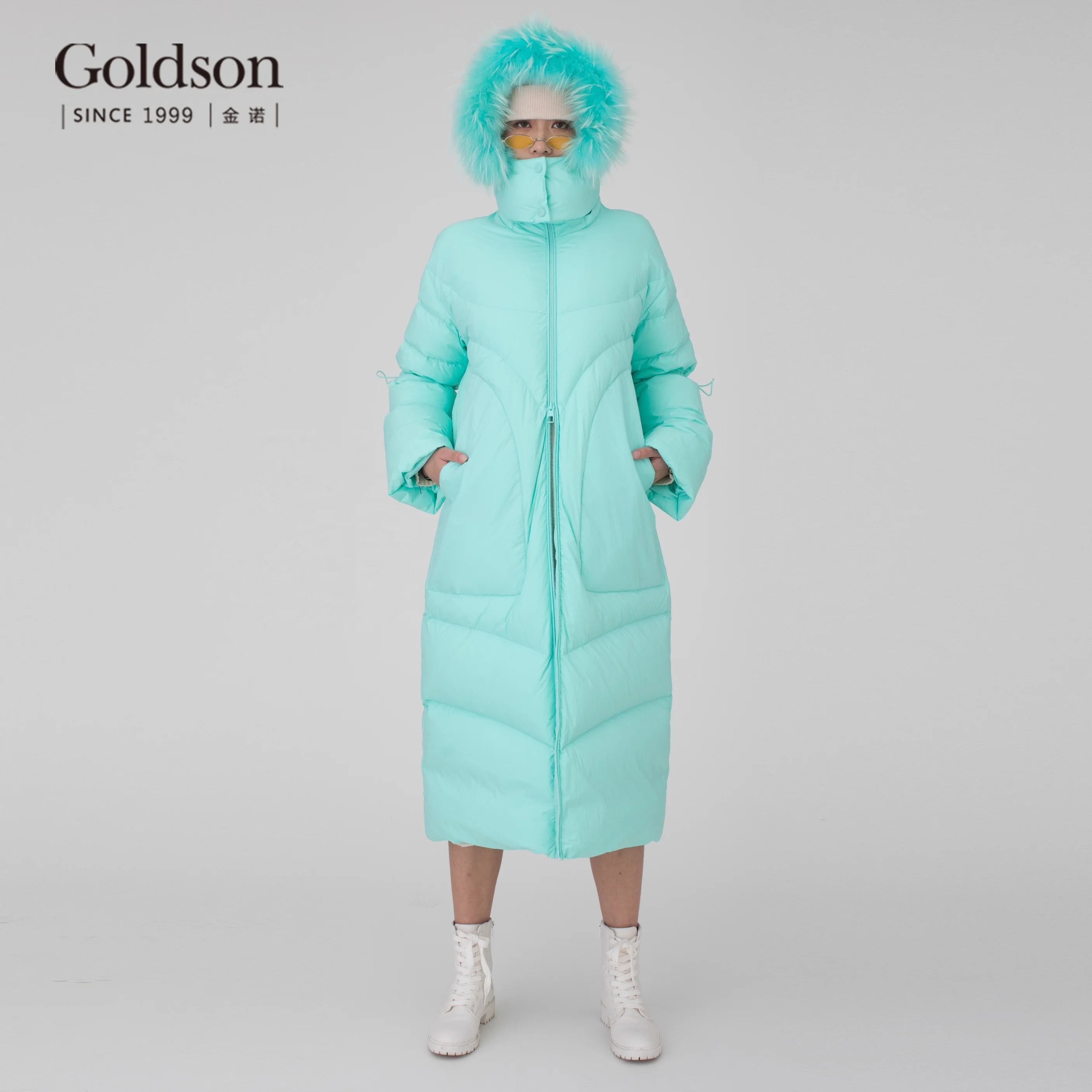 Winter Urban Raccoon Fur Trimmed Hood White Duck Down Women Down Coat Long for Ladies