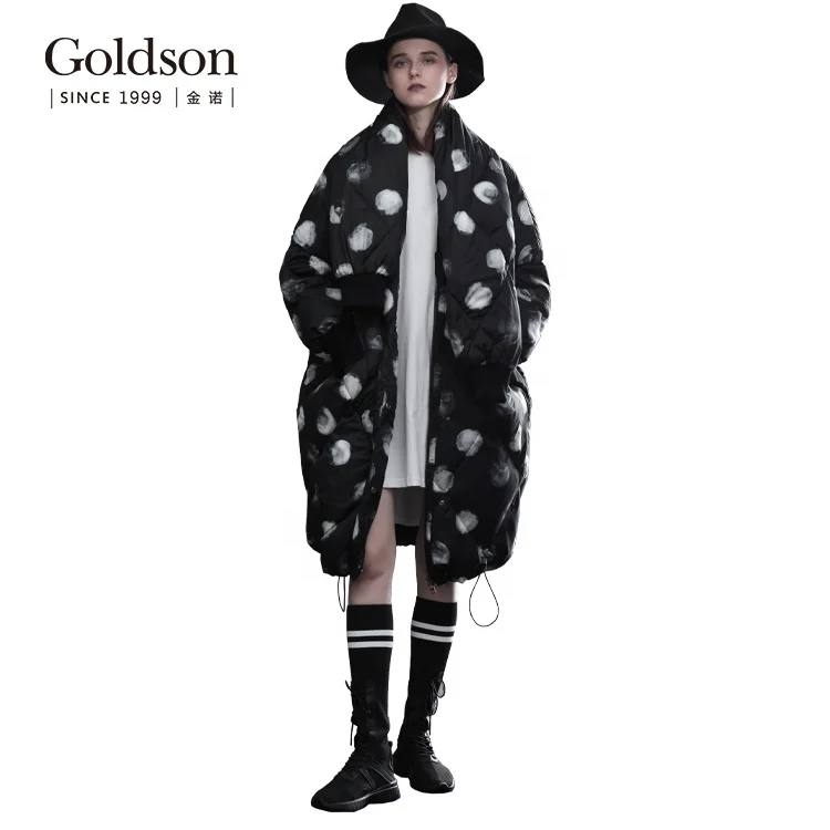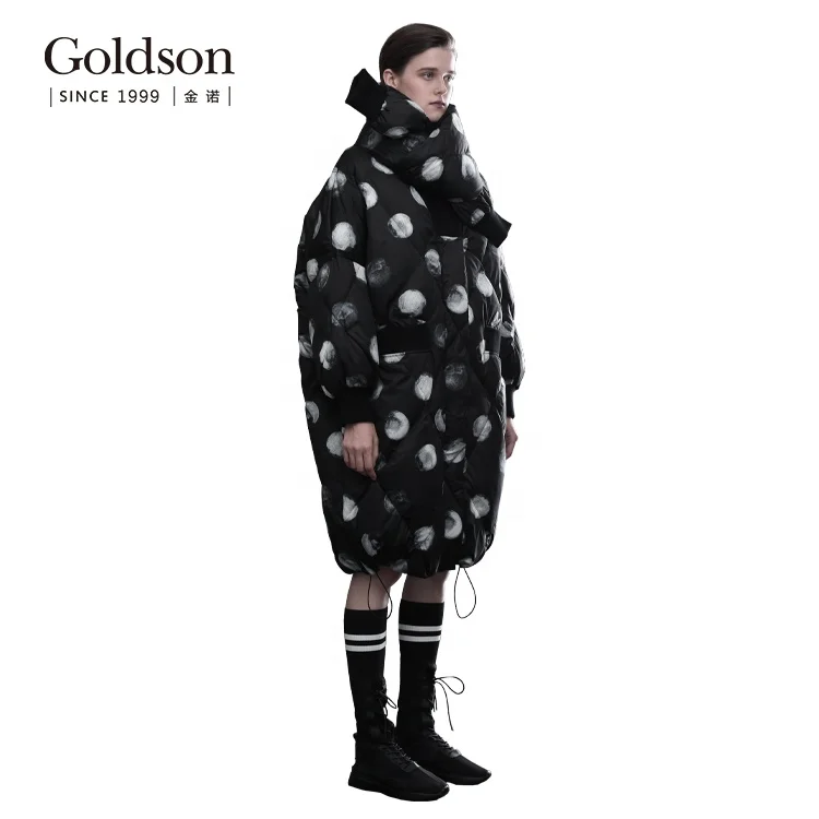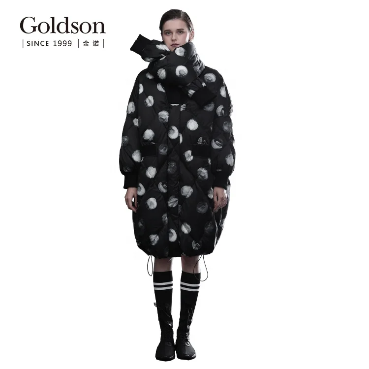 Ladies Female Japan Canada Printed Women Winter Long Duck Down Filled Jacket Parka Coat