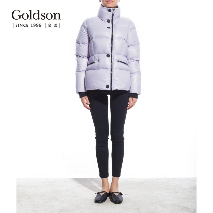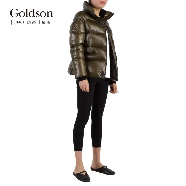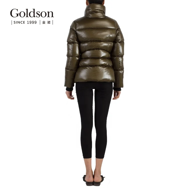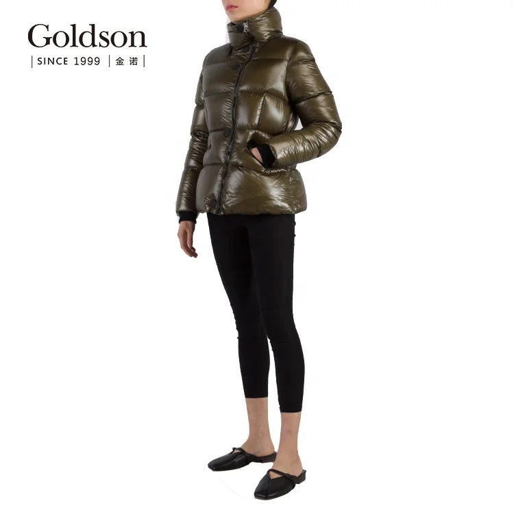 Puffy Shiny Brown Surface Polyester Windproof Women Winter Down Coats Jackets for Lady