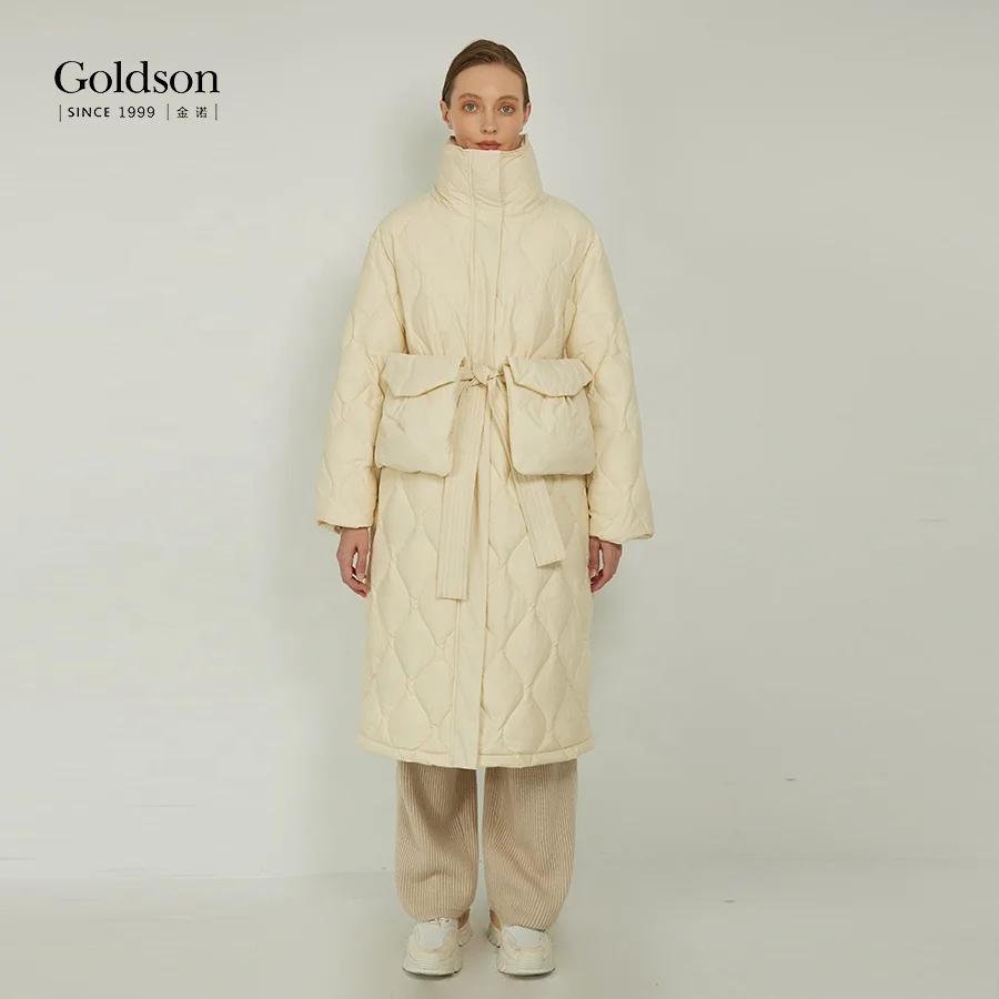 New Arrival Custom Logo Iconic Down Coat Knee Length Onion Cut Women White Duck Down Jacket for Winter