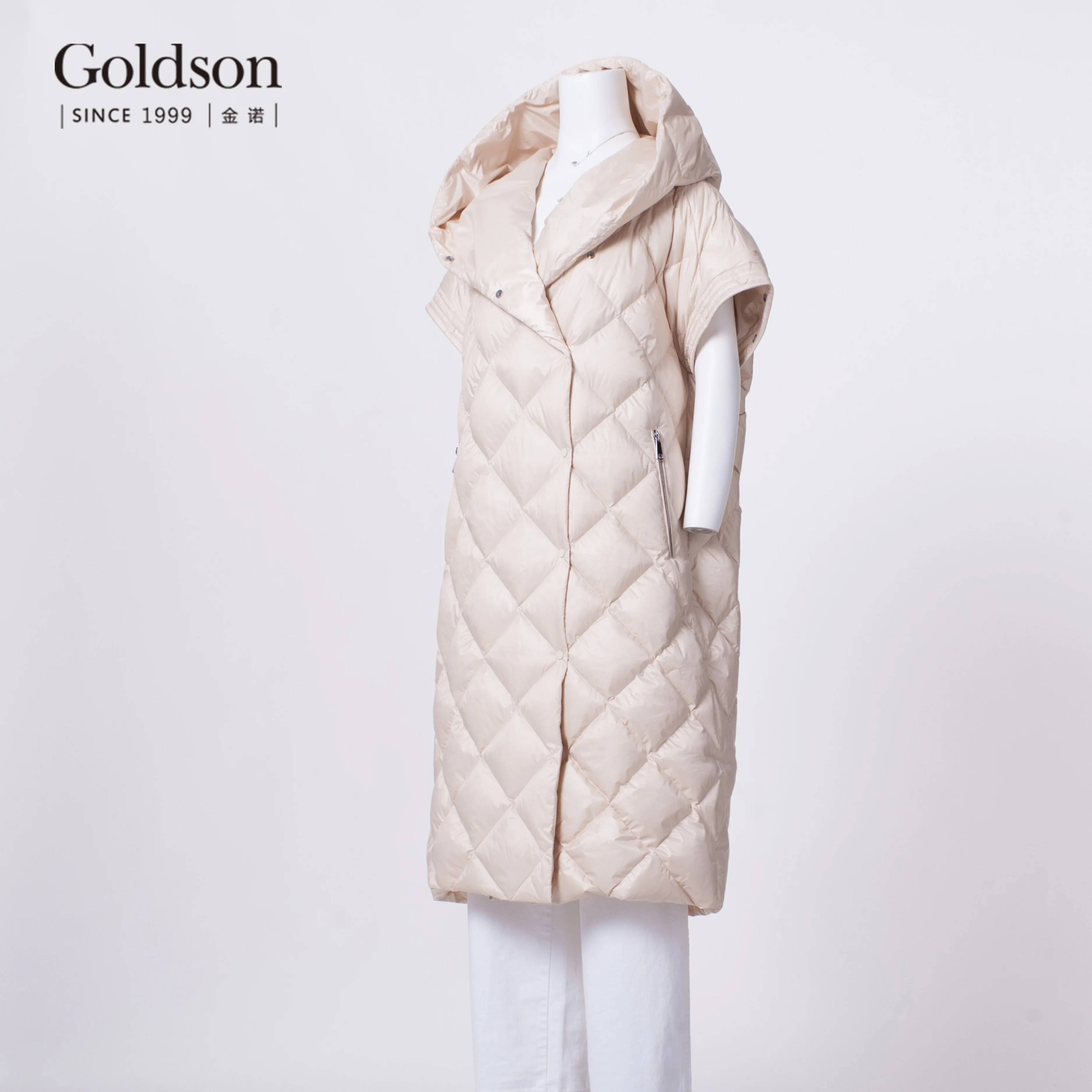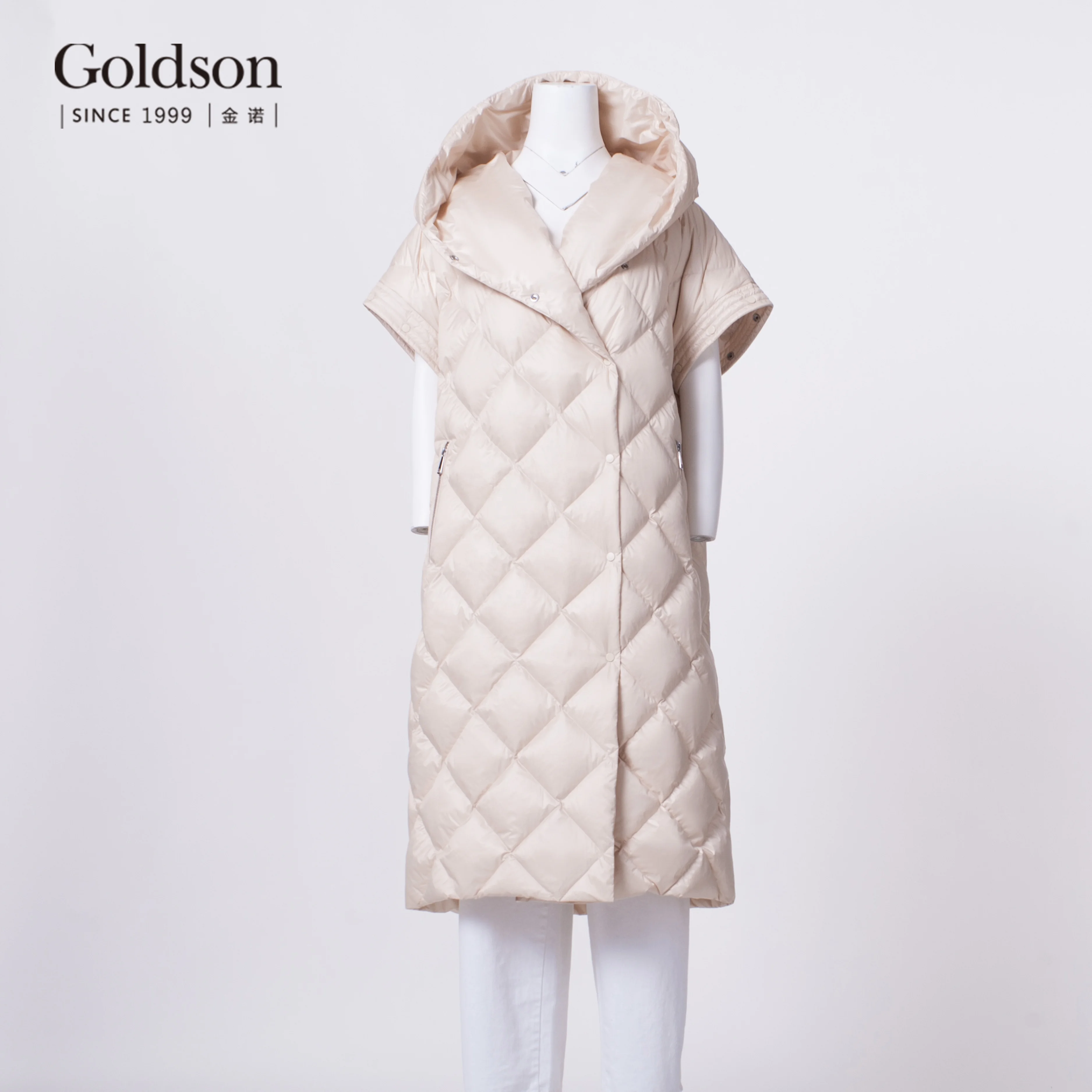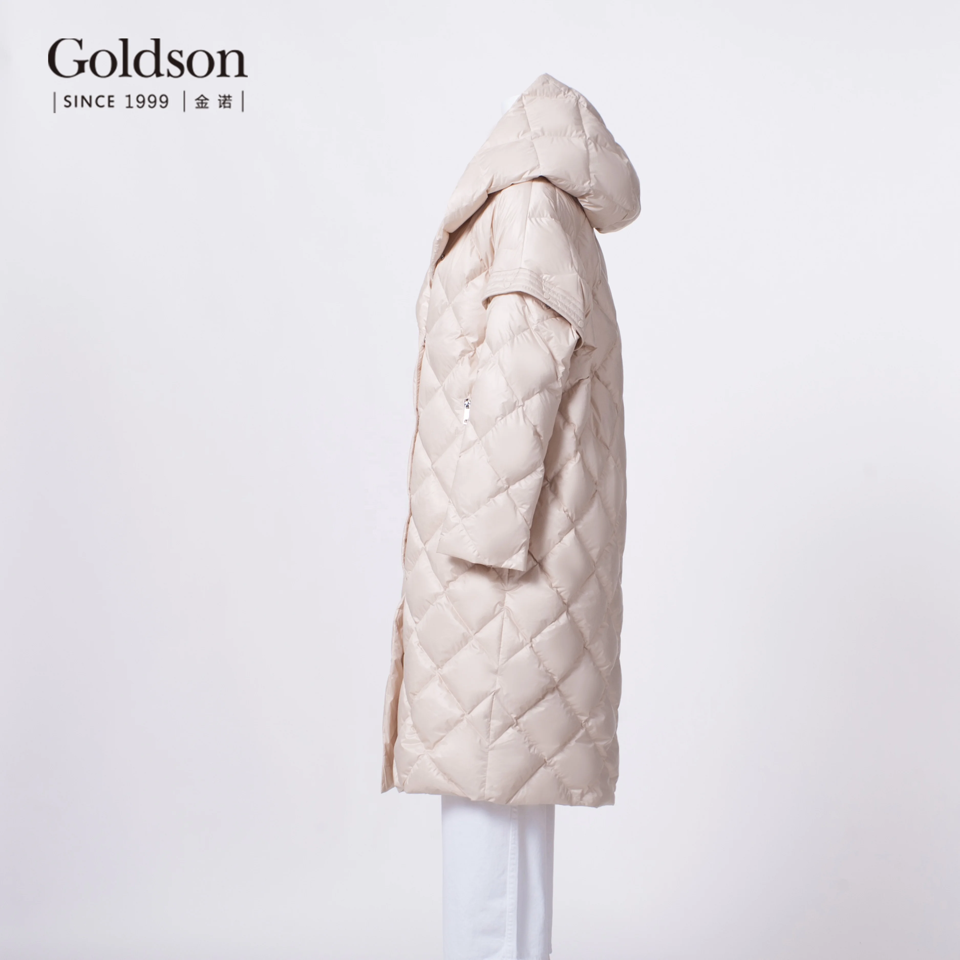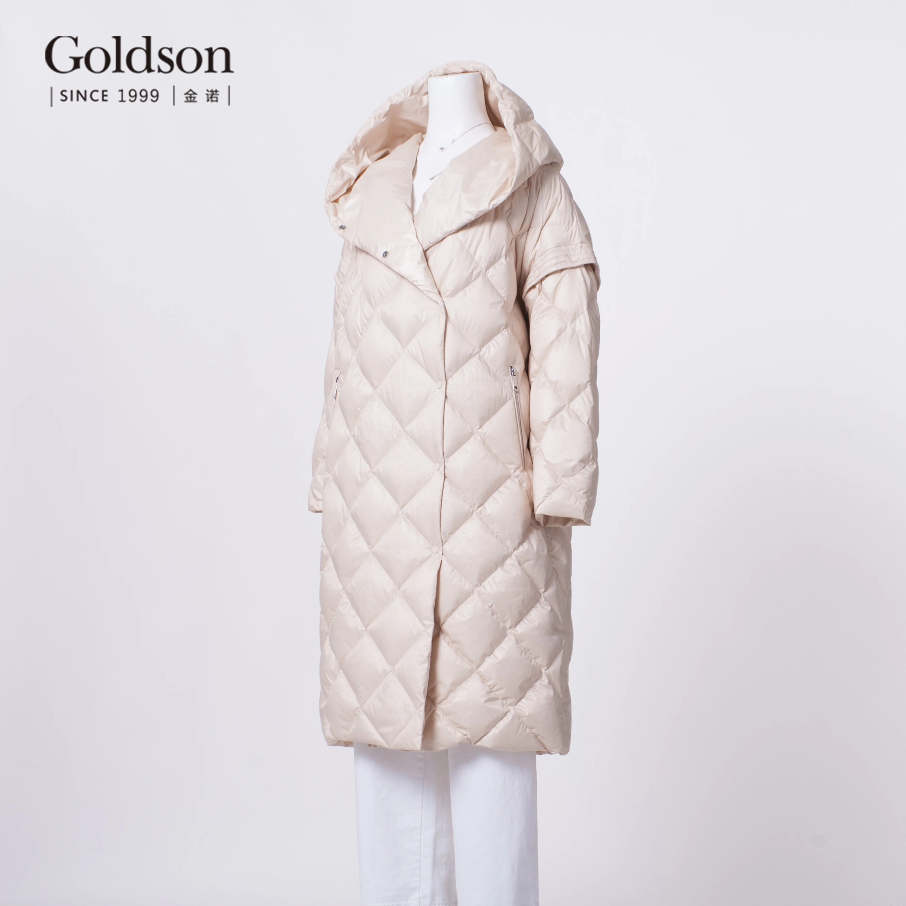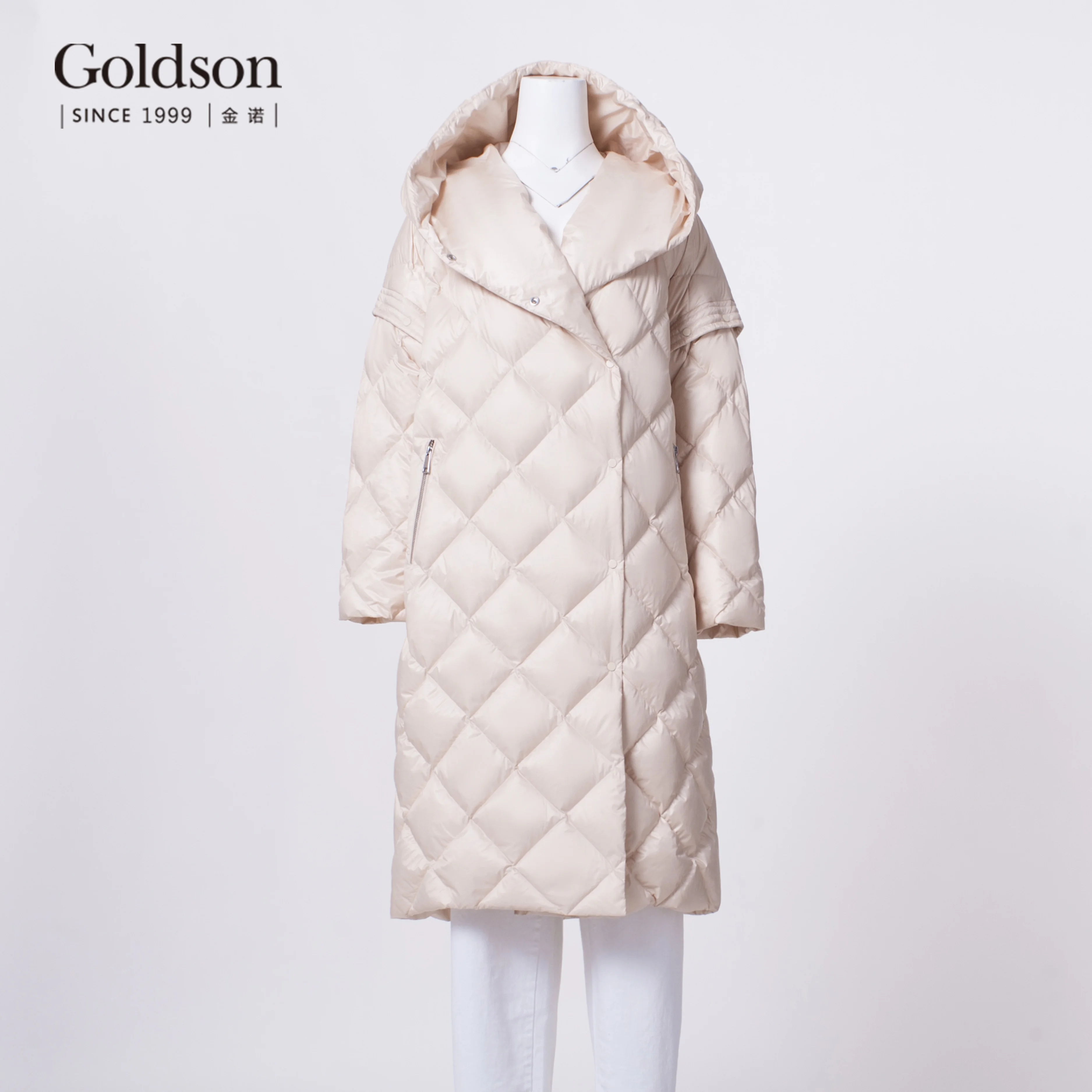 New Arrival Elegant Ladies Long Collapsible Sleeve Diamond Sewing Duck Down Coat for Winter