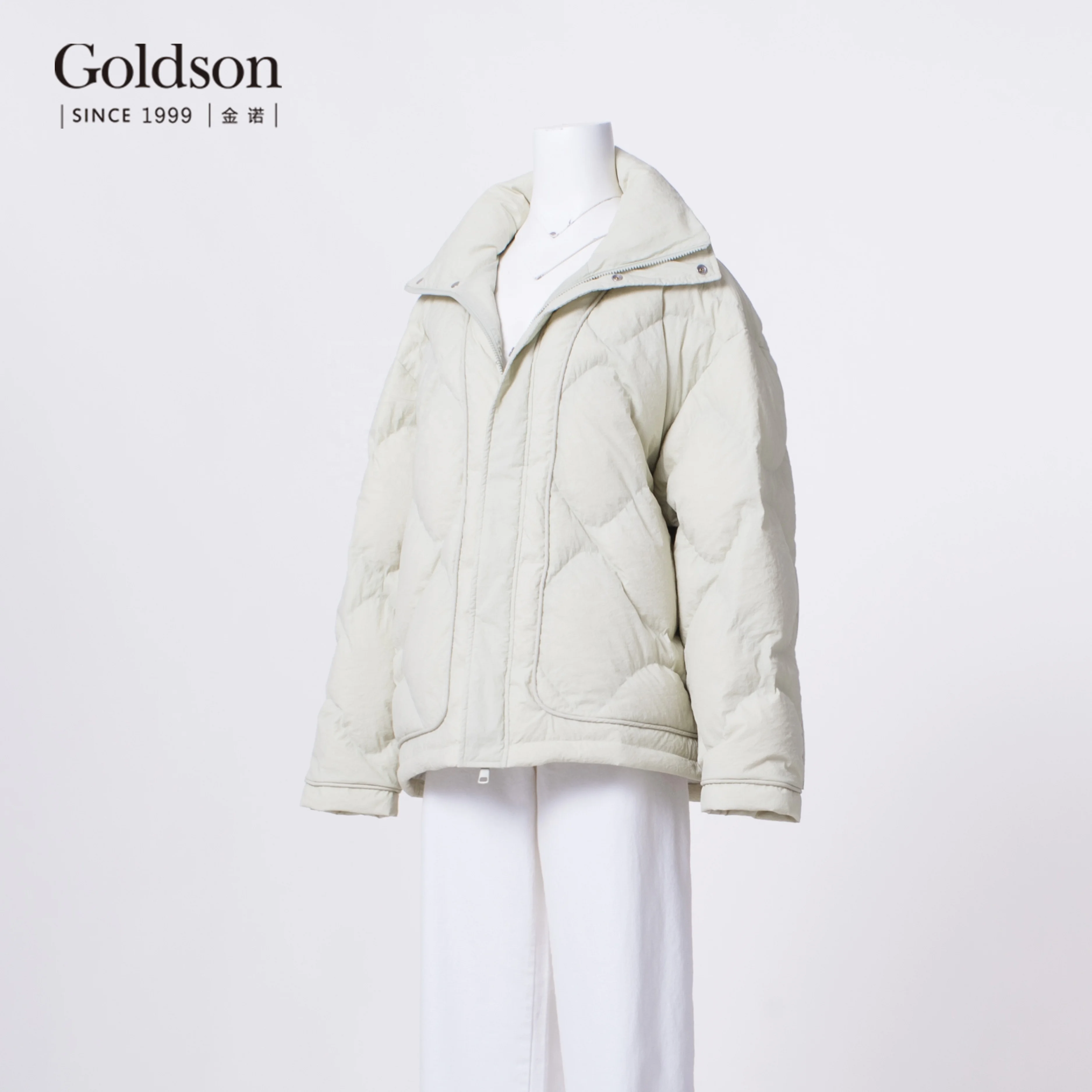 Customizable Logo Women's Winter Duck Jacket Sustainable Puffer Hooded Collar Waterproof Feature Polyester Lining Pattern