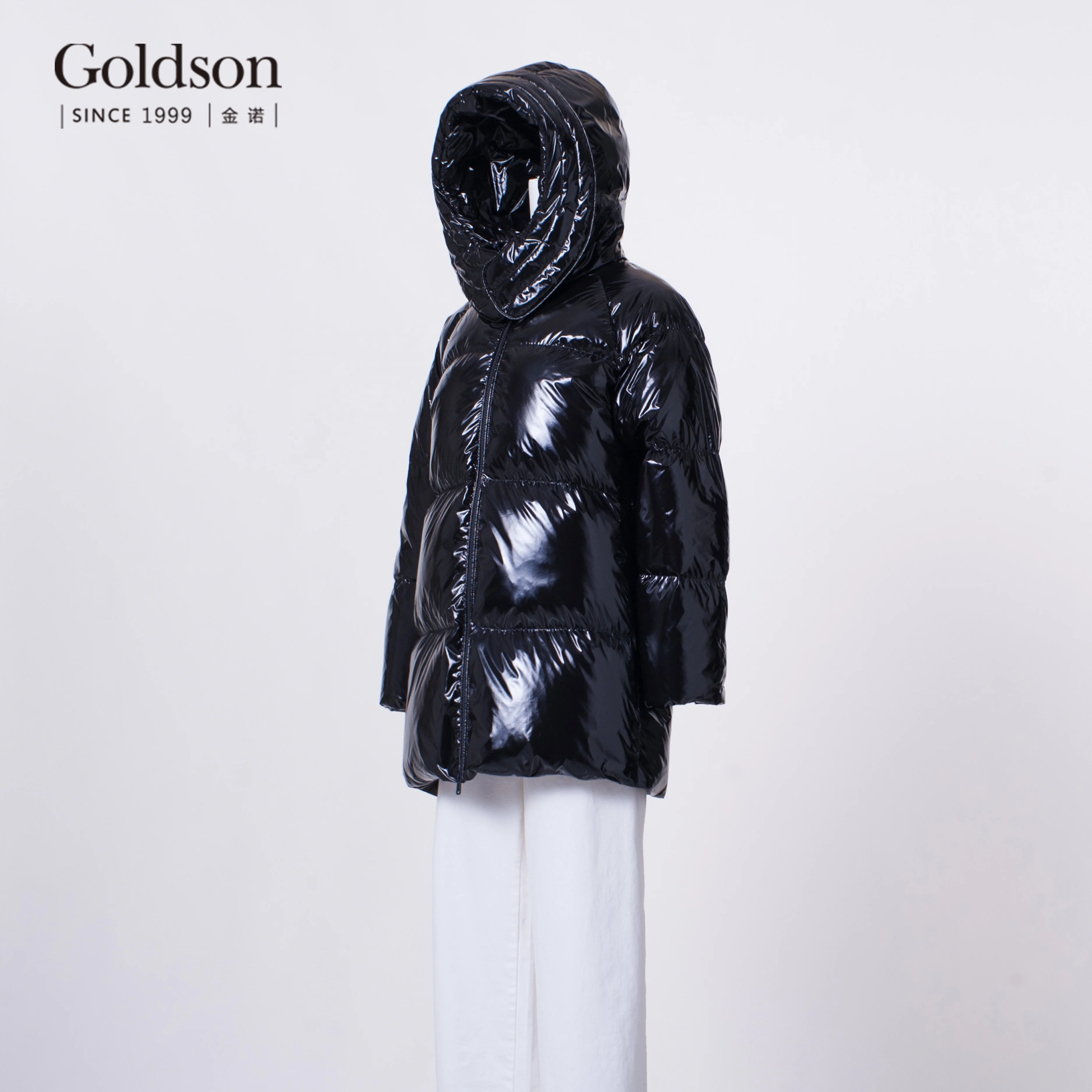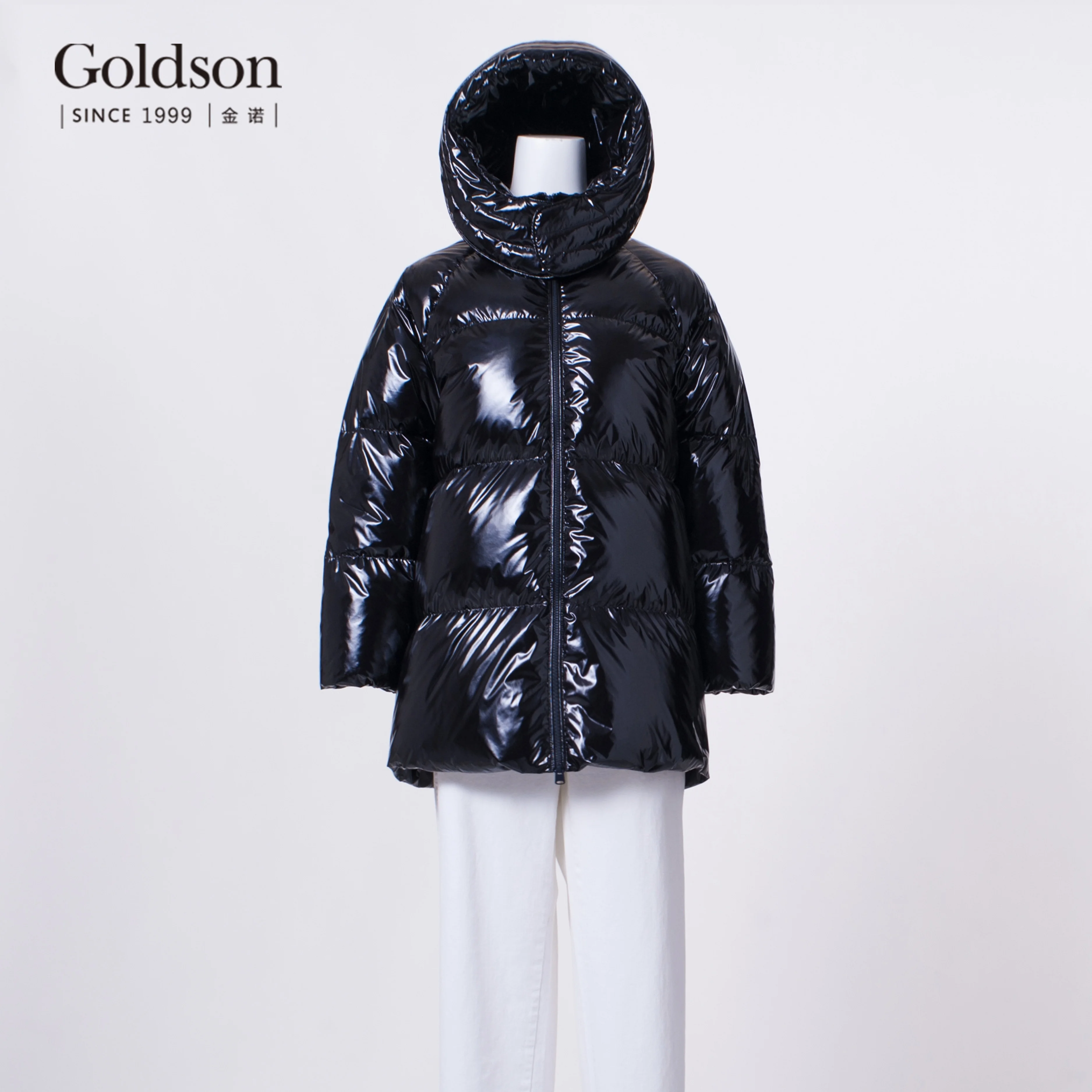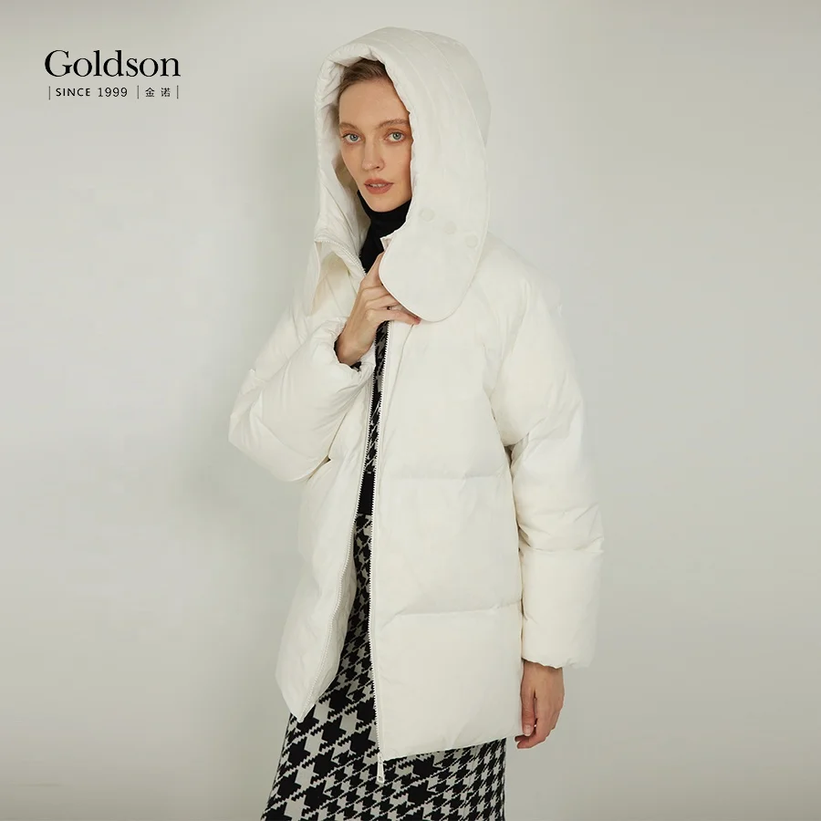 Women's Custom Logo Winter Duck Puffer Jacket Eco-Friendly Waterproof Hooded Coat Nylon Lining Decorative Pattern Collars Lines