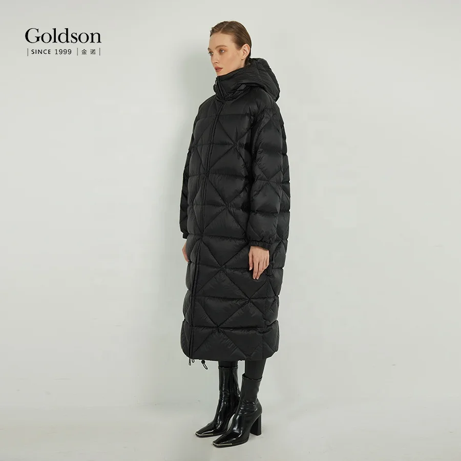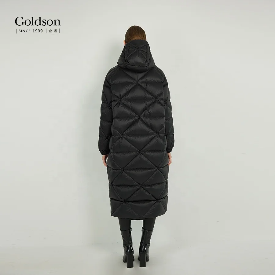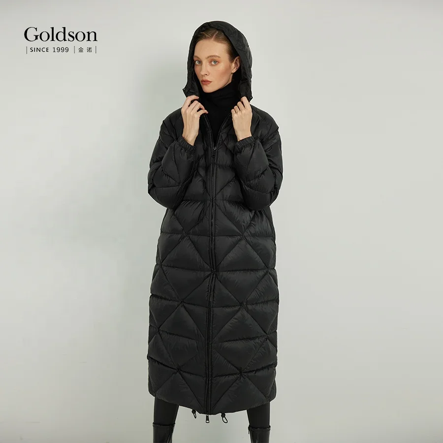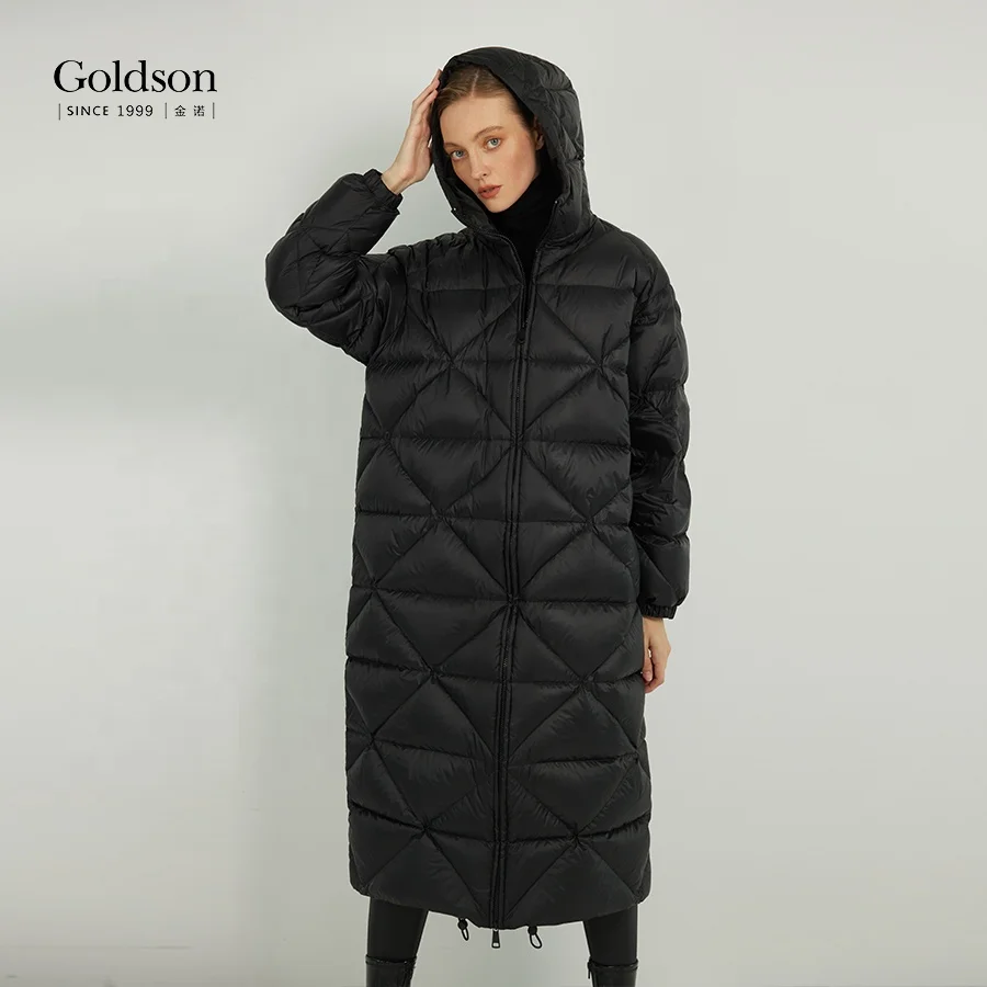 Customizable Urban Women's Long Down Jacket Recyclable Puffy Duck Coat Hood Waterproof Parka Polyester Lining Pocket Decoration