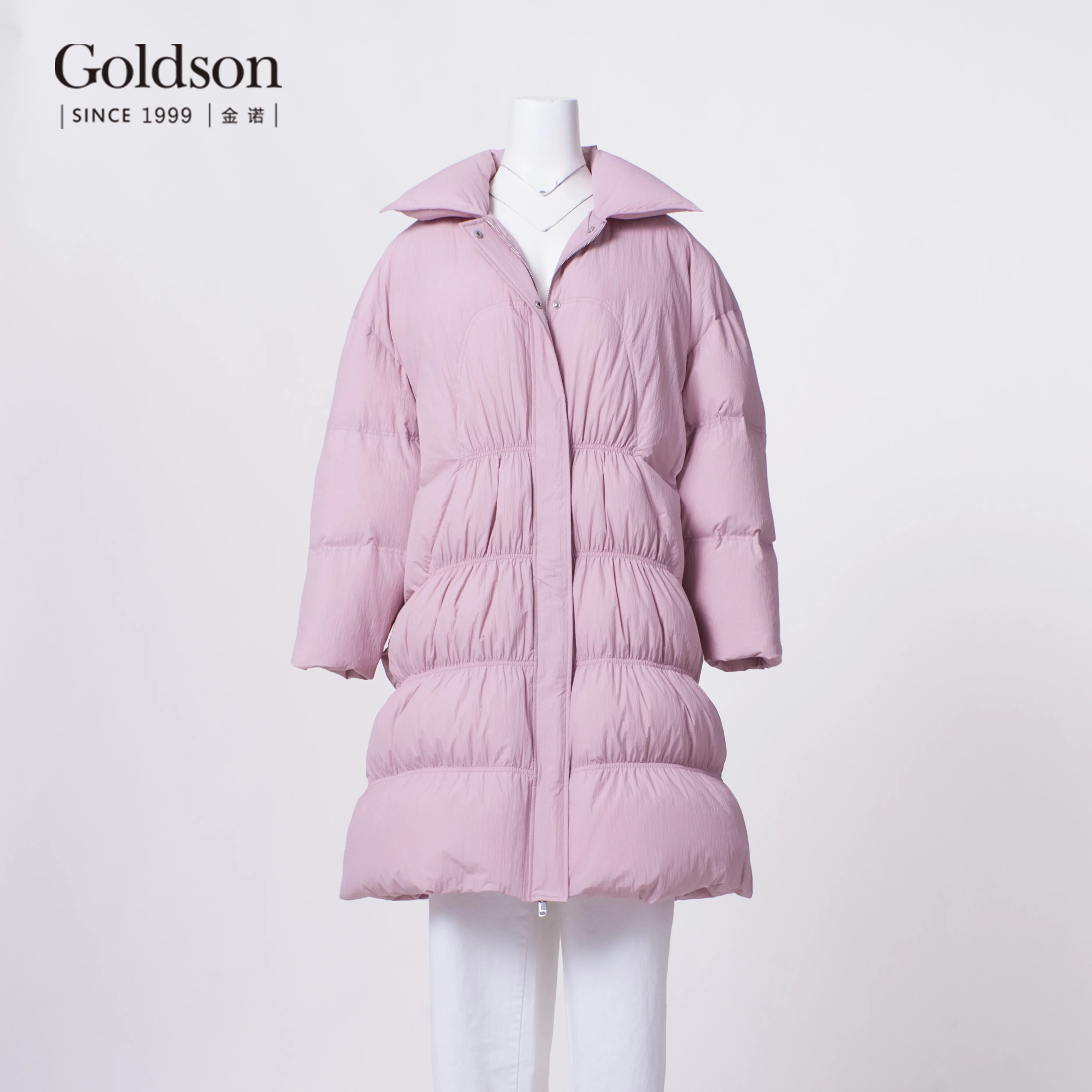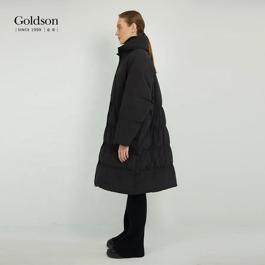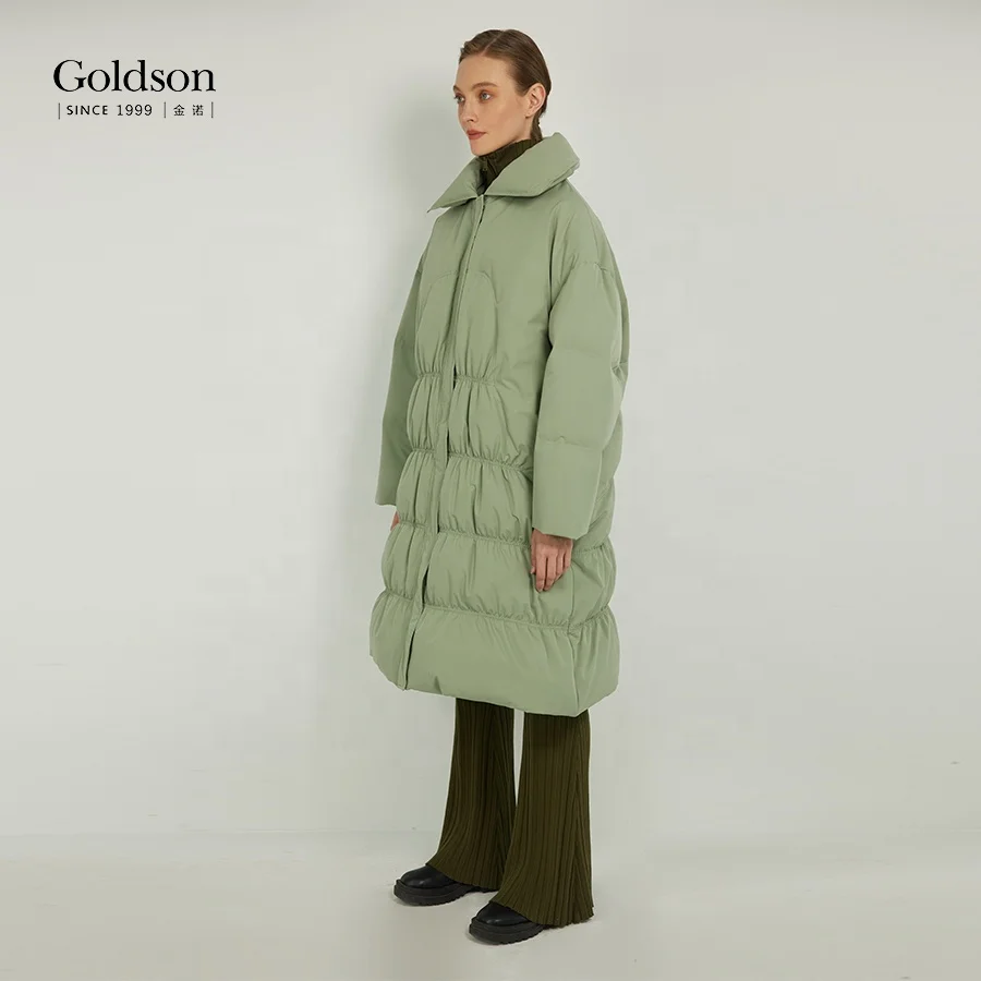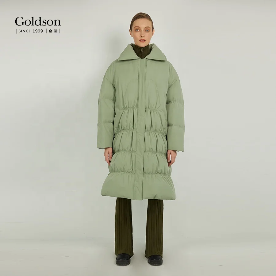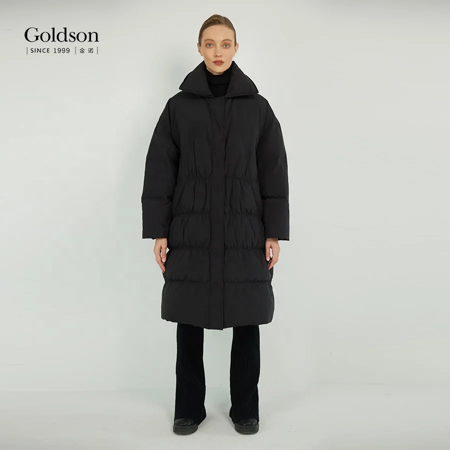 Women's Winter Duck Coat Slender Beam Waist Long Fashionable Waterproof Breathable Button Decoration Polyester for Office Lady