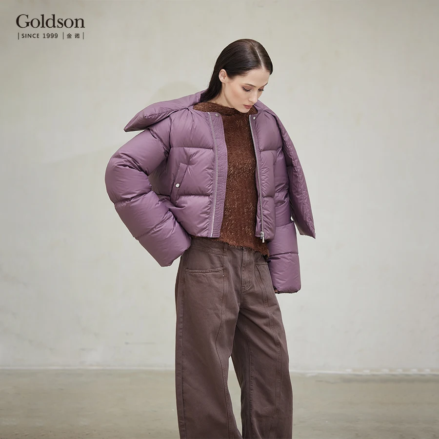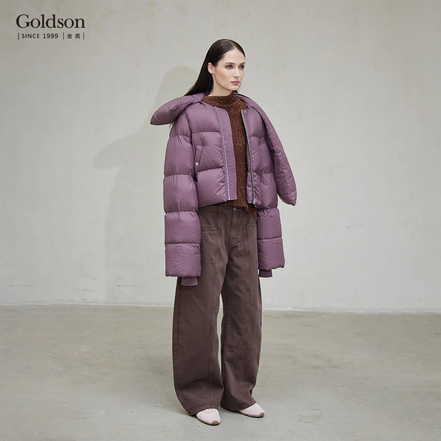 Women's Down Jacket with Attached Scarf Elegant and Warm Outerwear