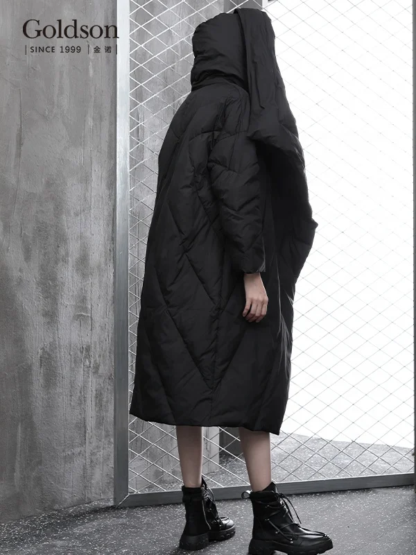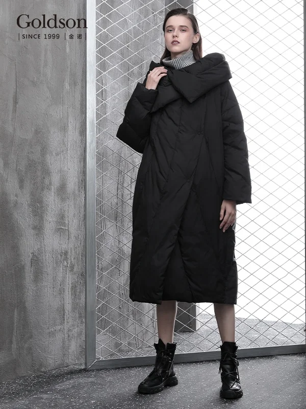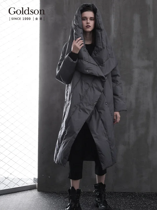 Korea Ladies Winter Oversize Single Breasted down Jacket Long Quilted Linen Lining Waterproof Hooded Coat for Women