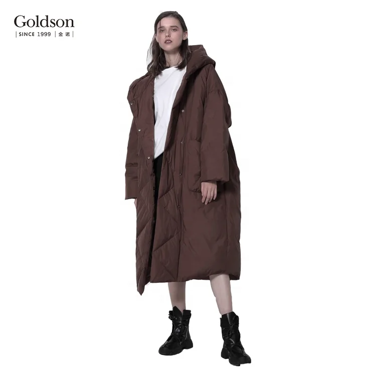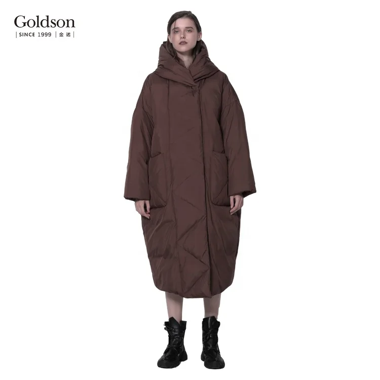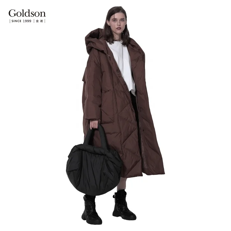 Goldson Canada Women's Quilted Nylon Long Coat Winter Fashion Logo Hooded Reversible Waterproof Windproof Breathable
