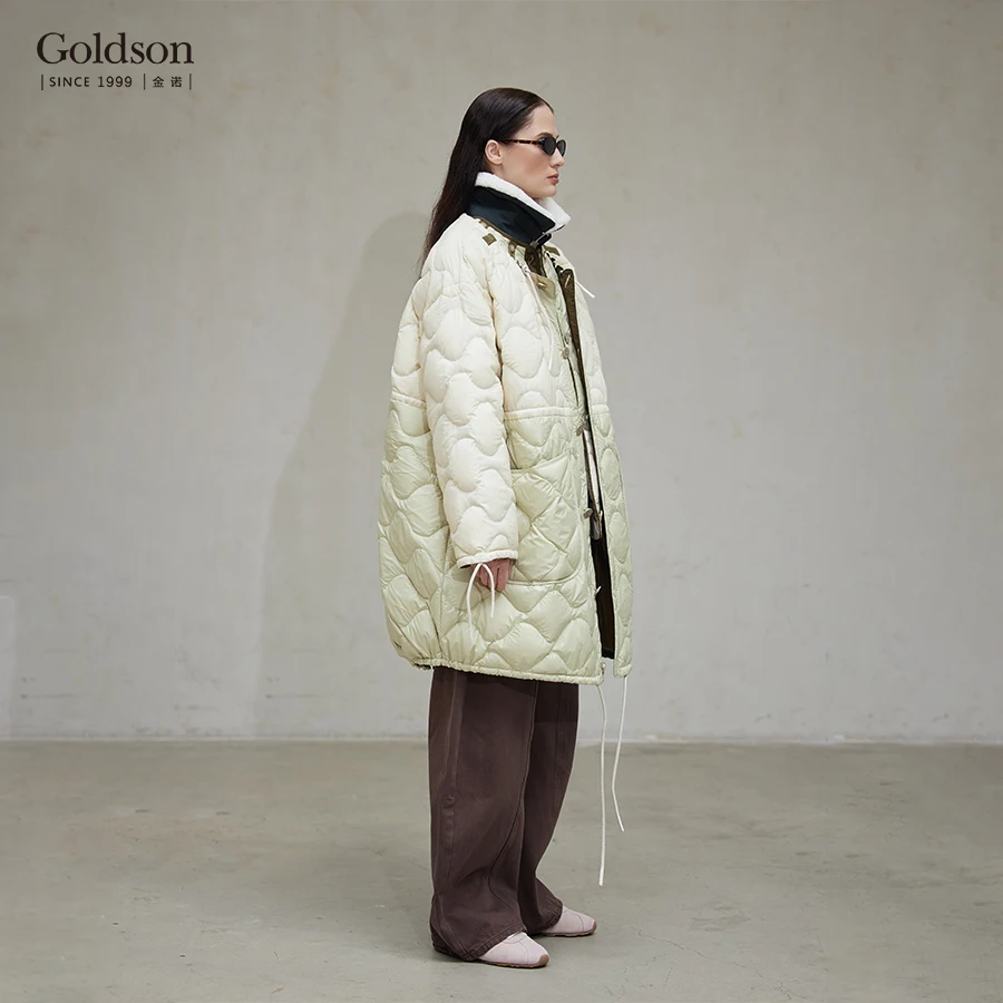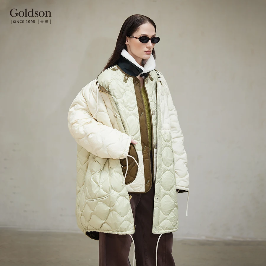 Elegant Reversible Waterproof Down Jacket Women Detachable Collar Short Length Thin Autumn Plain Dyed Technique Windproof