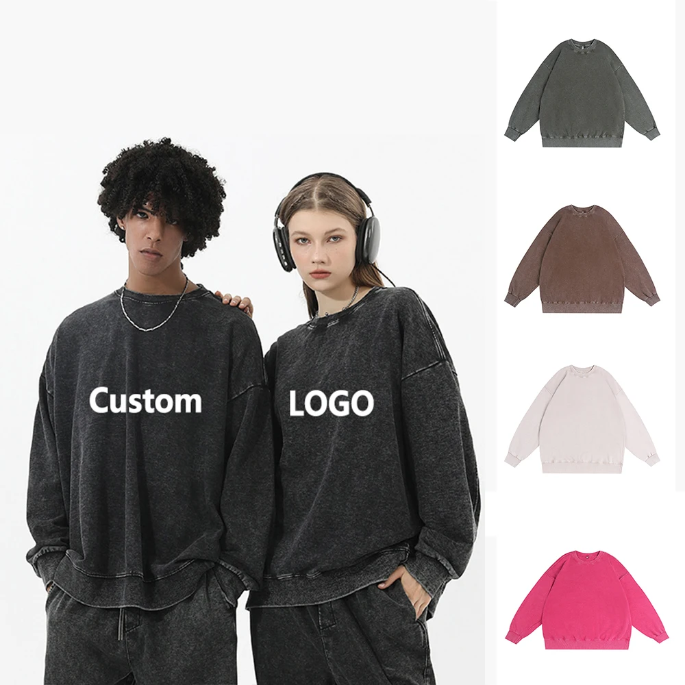 Custom Streetwear Washed Hoodies Mens Blank Black 350gsm French Terry Vintage Distressed Acid Wash Hoodie Men