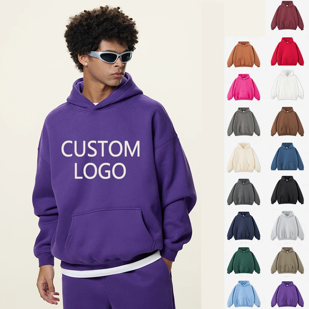 Men High Quality Polyester Cotton Thick Heavy French Terry Pullover Hoodie Custom Drop Shoulder Fleece Oversized Hoodie
