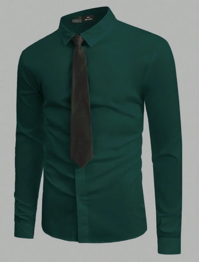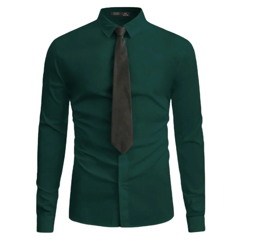Retail Men's Long Sleeve Winter White Business Shirts Green Apparels Style Single Breasted Dress Shirts Anti-Wrinkle Feature