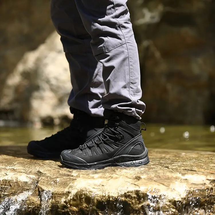 Men's Leather Motorcycle Tactical Boots Outdoor Jungle High Ankle Delta Camping Boots for Men