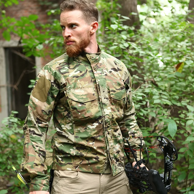 Huanlong Outdoor Camouflage Tactical Long Sleeve Shirt All-Seasons Daily Commute Baggy Mens Shirts Casual