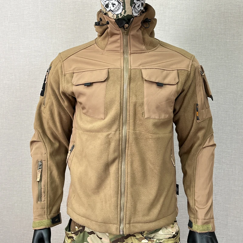 Men's Slim Crinkle Fleece Soft Shell Jacket Outdoor Splicing Camouflage Pattern Formal Style Zipper