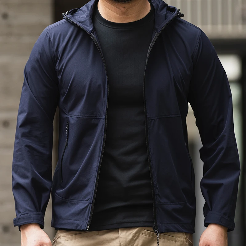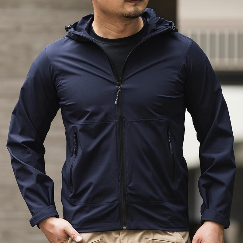 Huanlong Men's Waterproof Quick Dry Breathable Summer Slim Hooded Bomber Jacket Formal Stand Collar Thin Thickness OEM Service