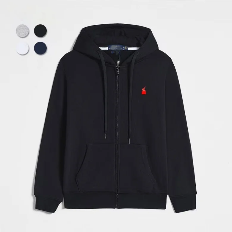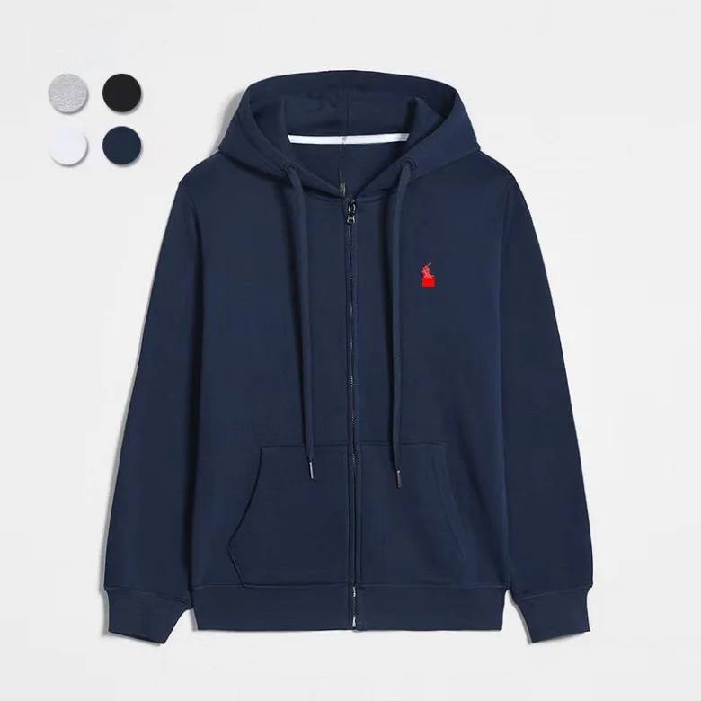 Custom Logo Design Brand Men's Quality Winter Zipper-up Cardigan Hooded Jacket Embroidered Long Sleeve Solid Outdoor Coat Hoodie