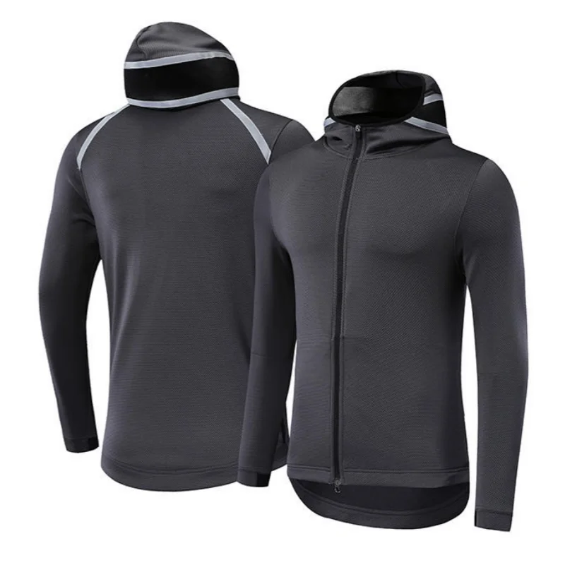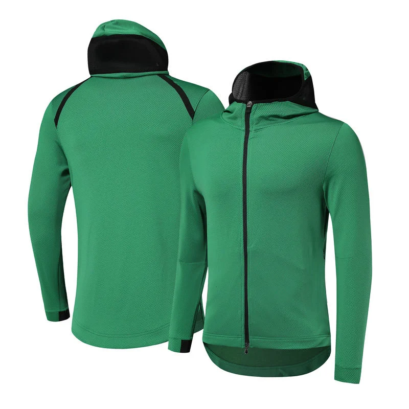 Autumn Sporty Men's 100% Polyester Full Zipper Hooded Jacket Custom Rabbit Fur Solid Pattern Texture Fabric Front Logo