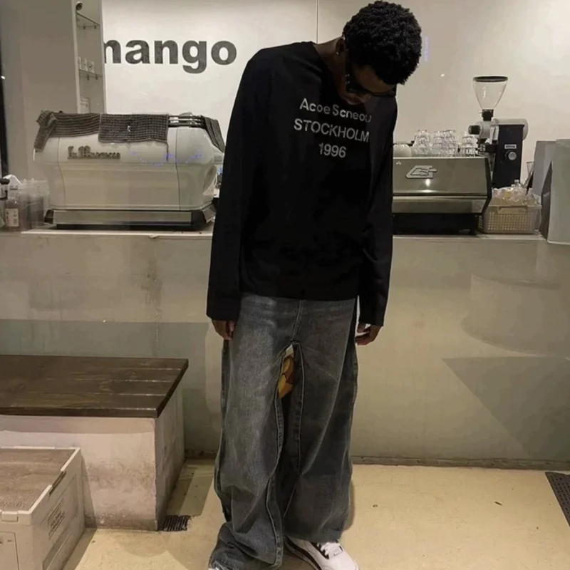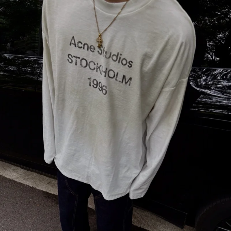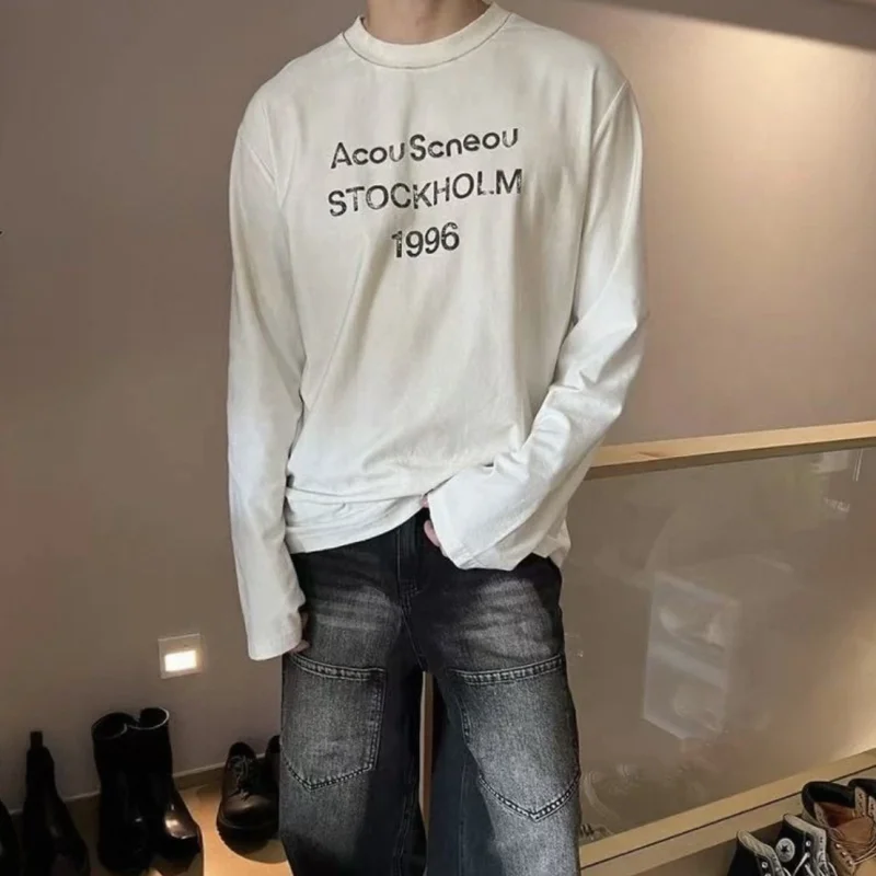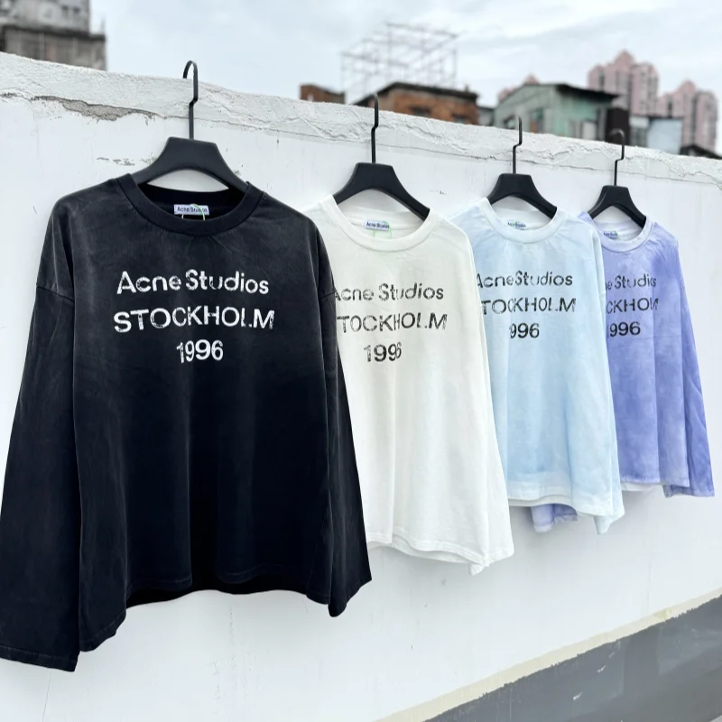 Wholesale Cotton Fabric Acid Wash Oversize High Quality Long Sleeve Heavy Weight Custom Logo Men's Long Sleeve T Shirt