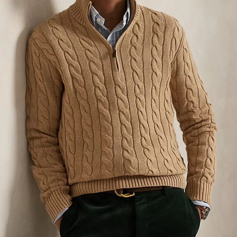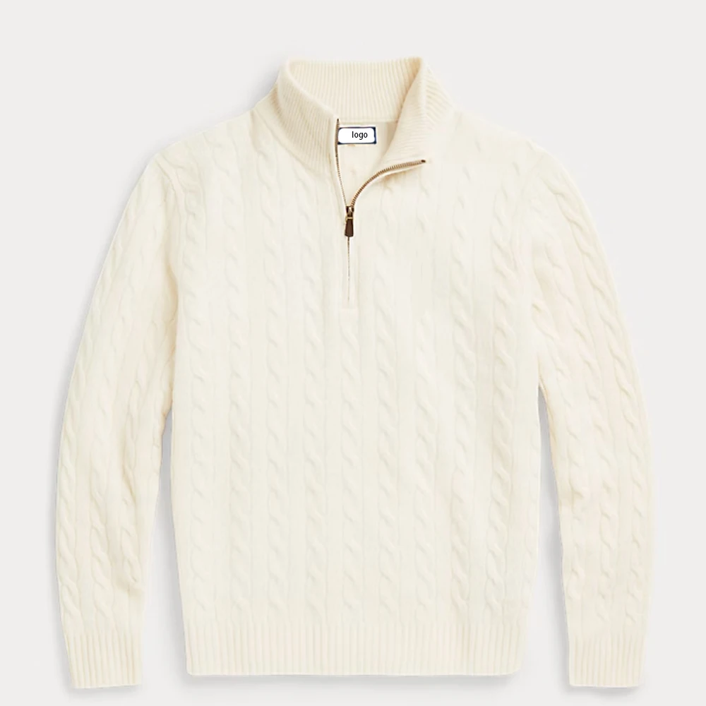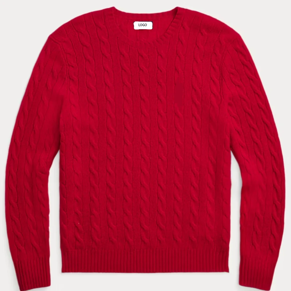 OEM & ODM Custom Men's Cable-Knit Sweater Custom Crew Neck Men Solid Color Cotton Knitted Knitwear Sweater