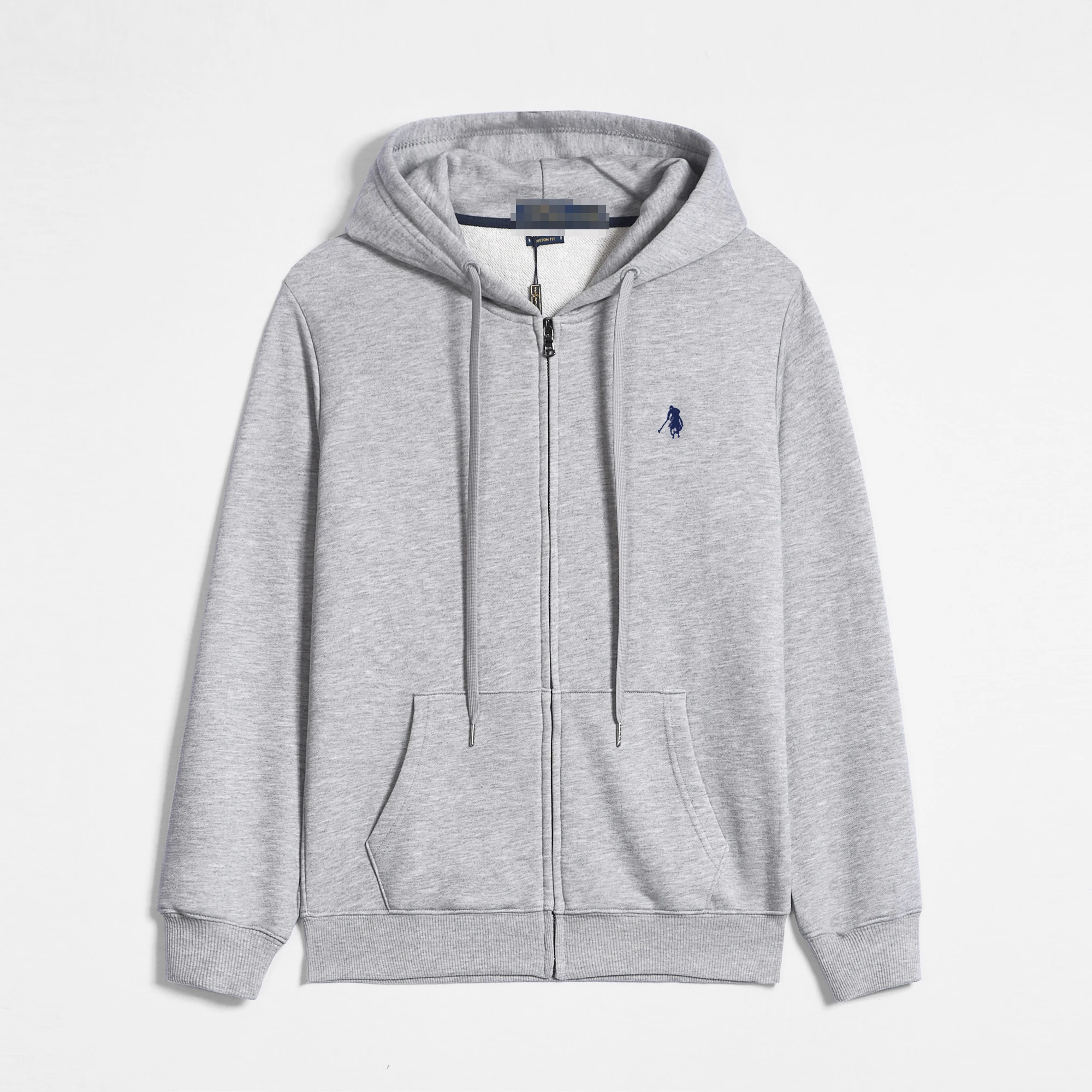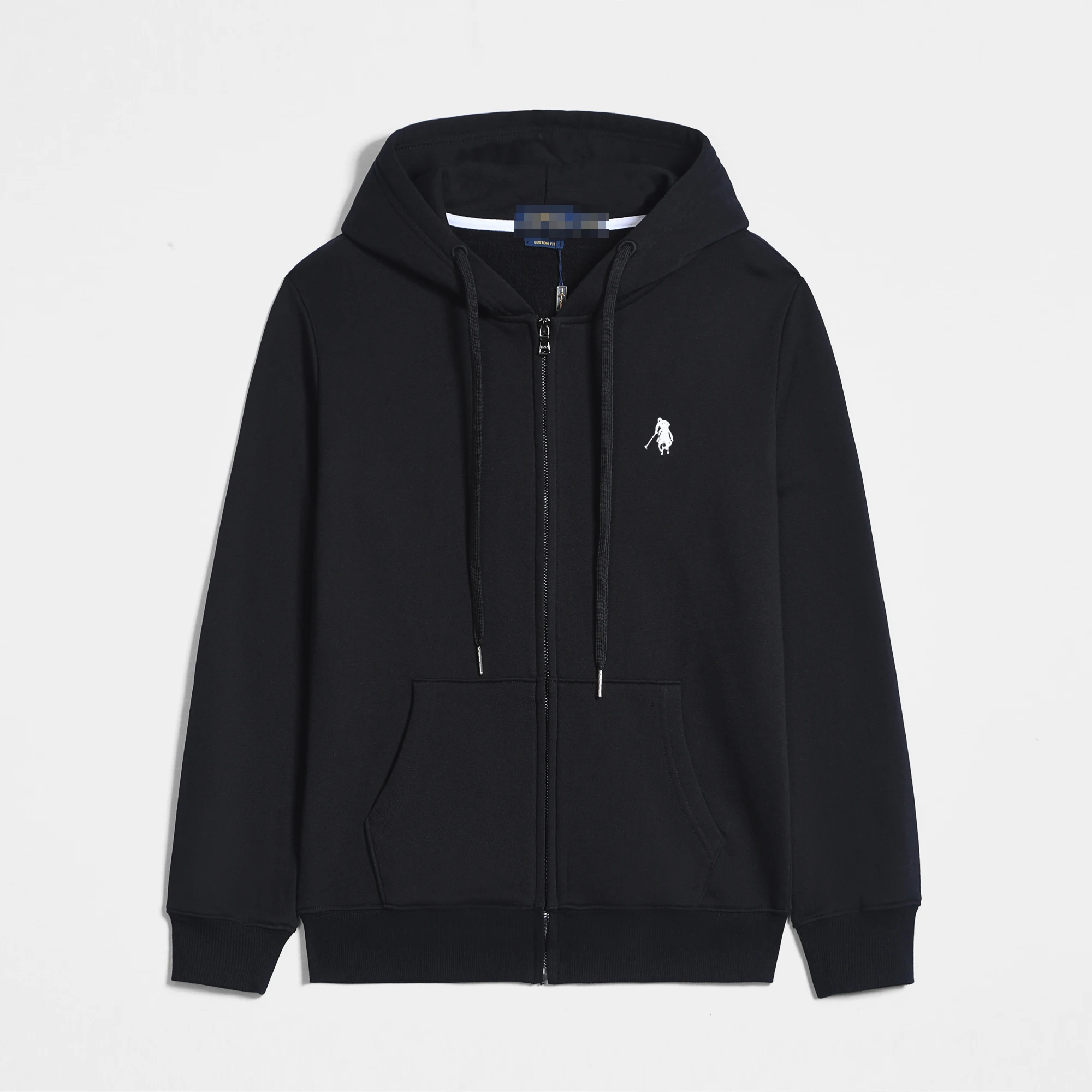 Custom Logo Design Men's High Quality Winter Oversized Zipper Cardigan Hooded Jacket Embroidered Long Sleeve Solid Hoodie Ralph